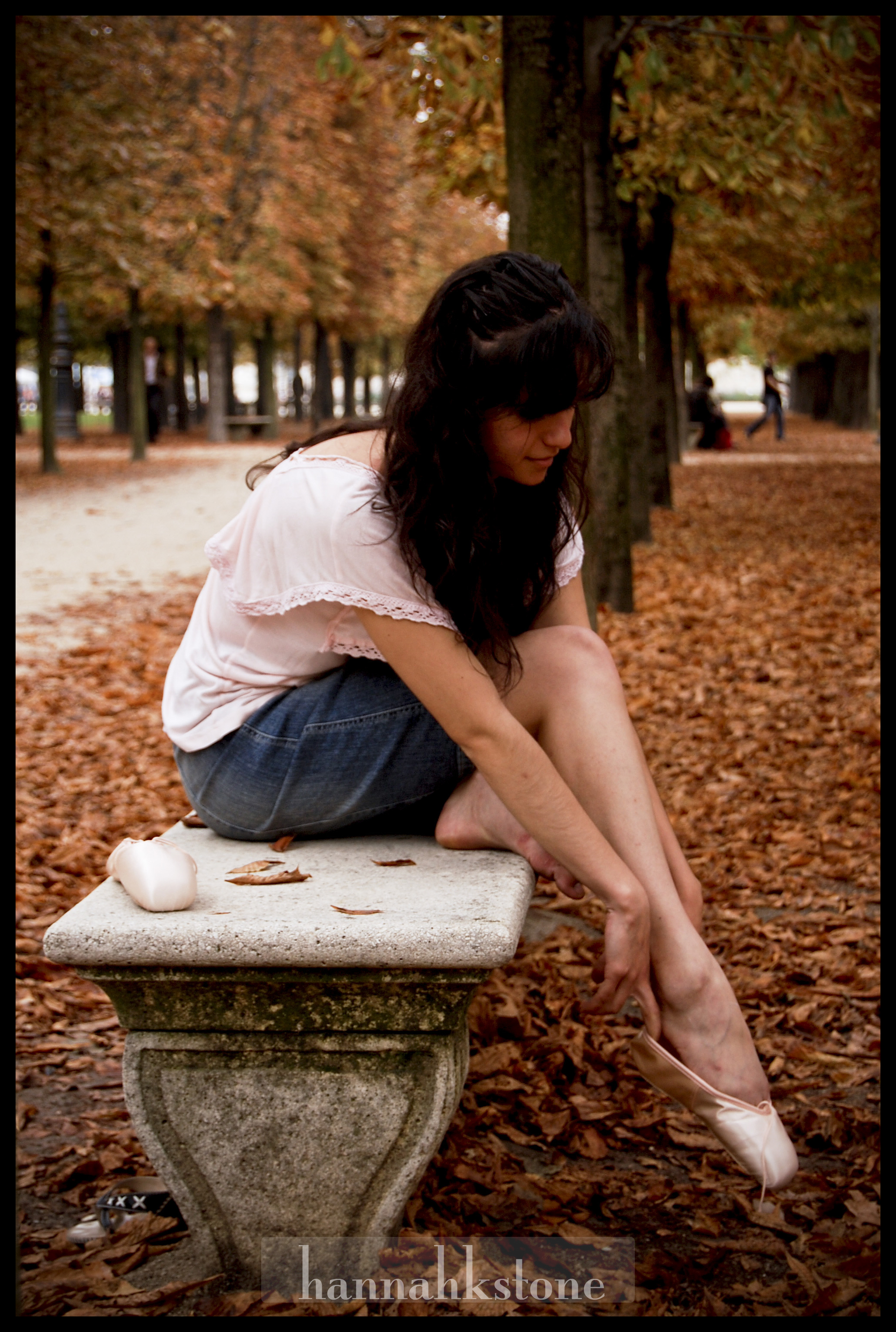 My name is Hannah and I wish I was a ballerina. This phrase is very intentionally in the present tense because my ballerina dreams did not die when I stopped taking ballet about 9 years ago. I am an unabashed ballet junkie who likes to sit as close to the stage as possible and stare at the perfect sea of iridescent pink shoes and silken ribbons. Wearing a tutu to work is more of an obsession than a mere desire. While I lived in Paris I sought tickets to every ballet imaginable, and would periodically stand in front of the dance shoe store to pine over pointe shoes.  My friend Ana- Joel actually bought some of those enchanted shoes one day, which led to this joyous photo in a park.  Who could resist becoming a ballerina in the parks of Paris?