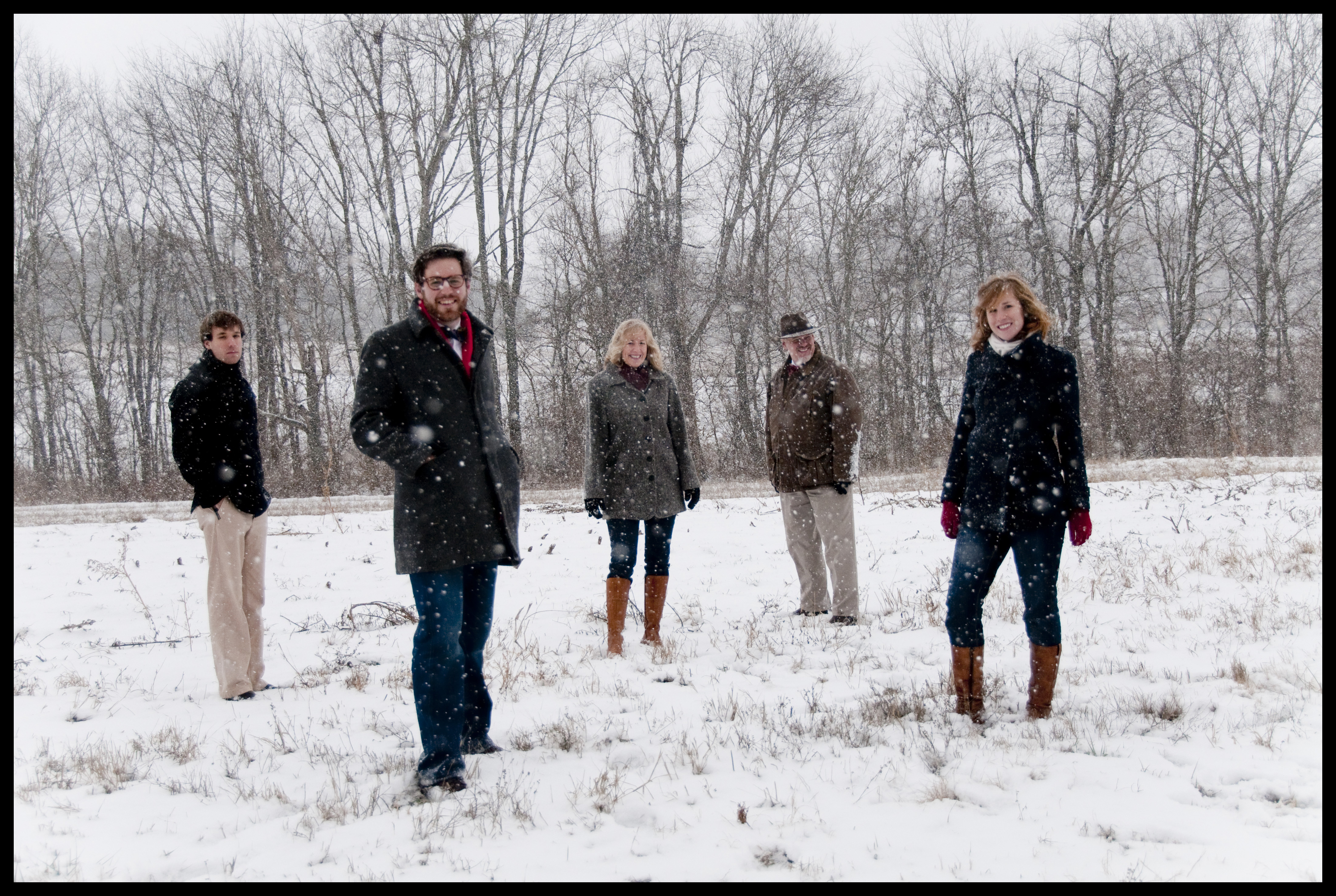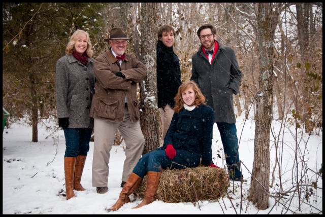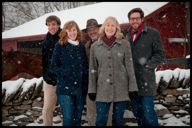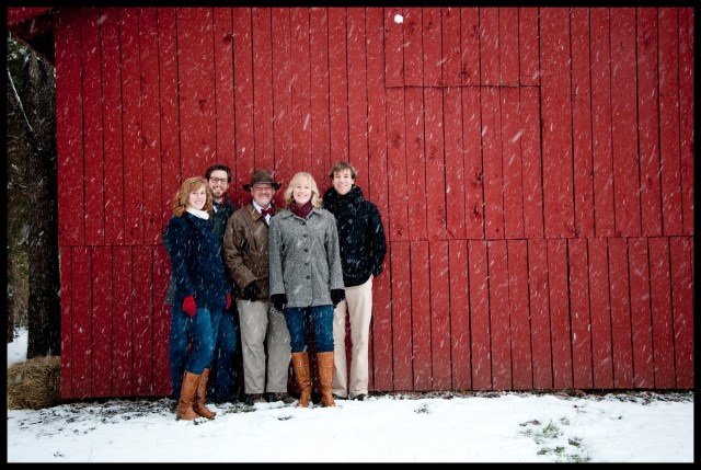 Today my family took family photos in the snowstorm. Here is my white Christmas. We are considering making the final picture the album cover for when we release our Christmas CD, which will be carols Stone family style, i.e. sung to the tune of “House of the Rising Sun” or the Gilligans Island theme. Another key element of the family photo session was my mom and I trying to get our boots in as many photos as possible.