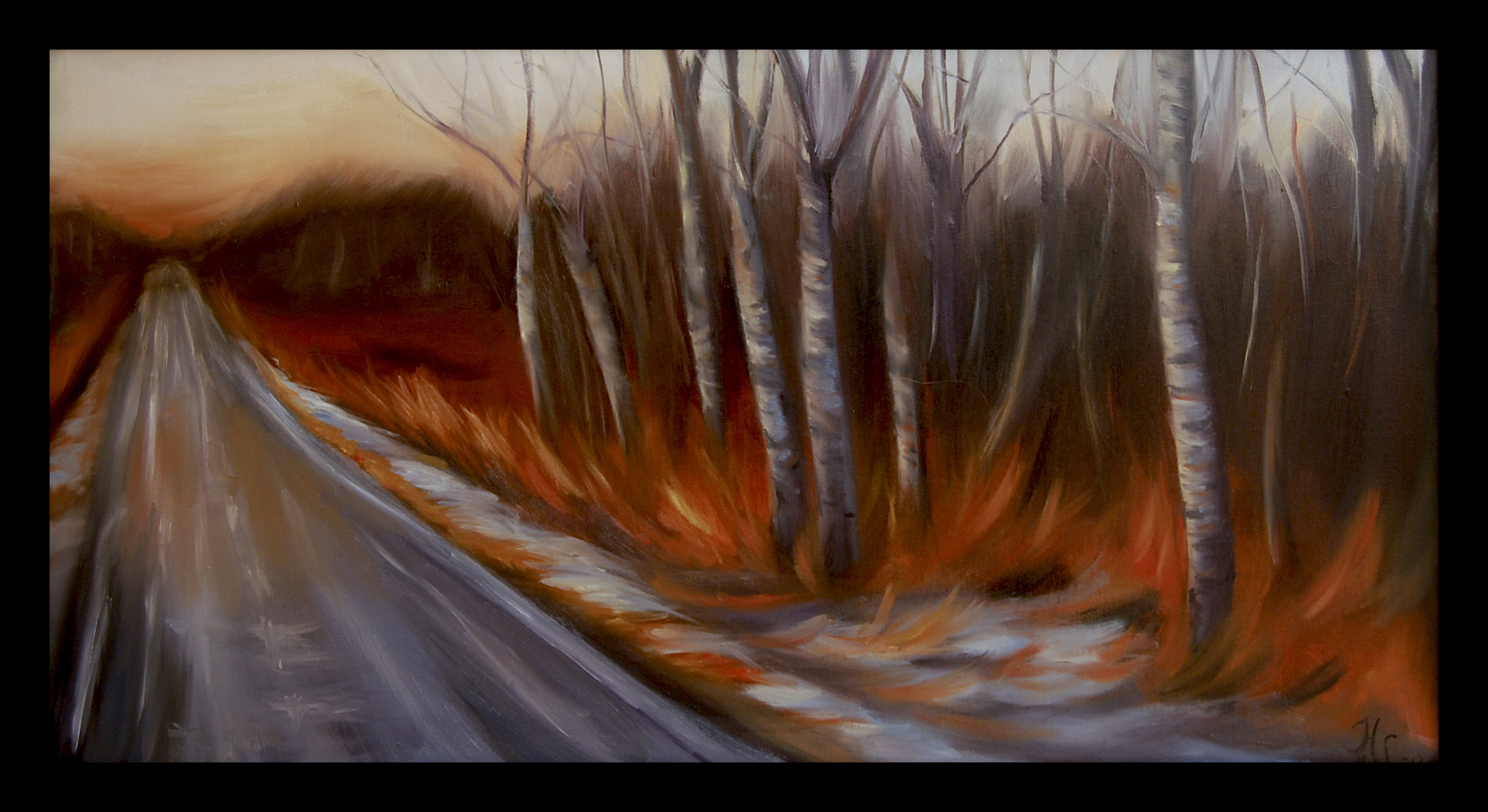 Lately we have been on a Robert Frost kick, so I leave you with a painting I did in college and the poem that inspired it.  Read it while you do some static lunges with arm curls and I promise both will be enriched.