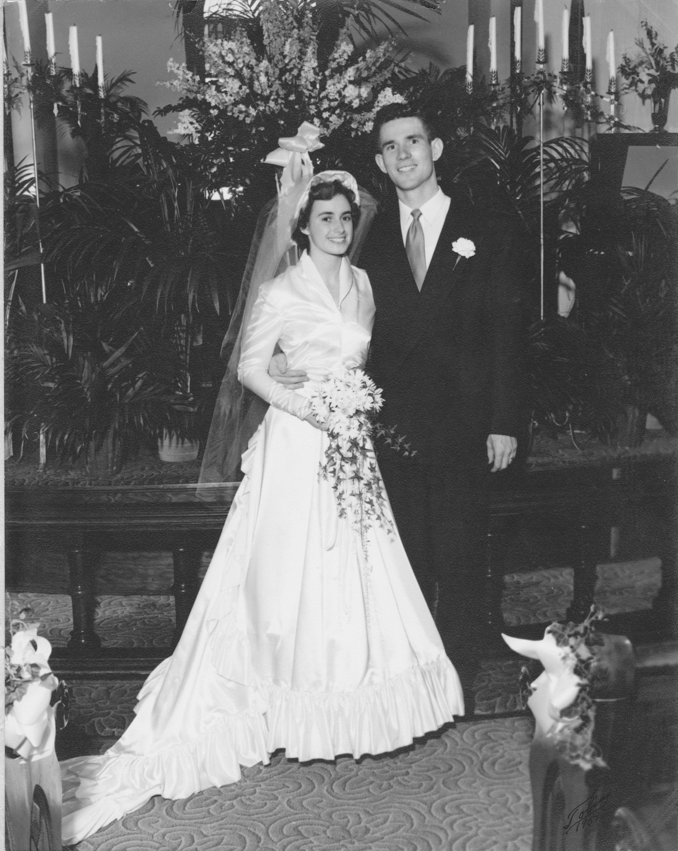 There was the story about my grandfather walking out of the Methodist conference refusing to cooperate, or them spending a night of their honeymoon on benches in Union Station in DC, or them traveling to revivals in dirty churches. We heard about his exciting acceptance to Princeton, and multiple moves where my grandmother fixed up little houses and parsonages for them to call home. But my favorite story is the one my grandfather tells about my grandmother’s wedding dress. Her college roommate made the dress, hemming all the yards of ruffle by hand, and my grandfather had heard stories of how beautiful it was to be. He describes seeing the church doors open and my grandmother walking towards him in yards of white satin “without spot or blemish.” This is how his love was at that point, he explains. He told us that over the past 60 years he has learned much more what it means to love, but in that moment, as he saw her in her perfect dress, he felt that he loved as perfectly as his young heart was capable. He said that his vows were beautiful because they proclaimed that love to world.