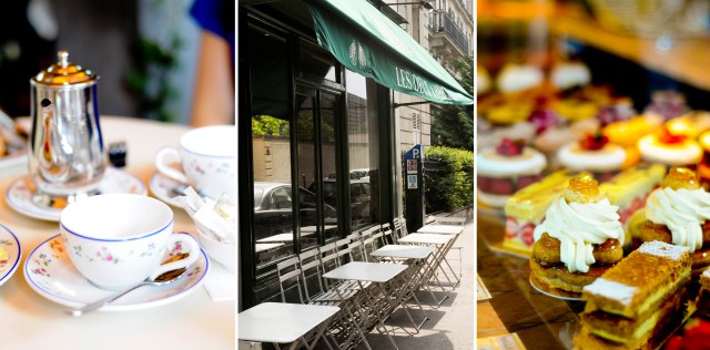 Les Trois Cerises (47 Avenue Suffren, 75007): Perhaps the most delightful new find, Les Trois Cerises is the perfect place for a ladies tea party. Instead of chairs many tables have ornate low couches with pillows, and you can eat in a little courtyard under wide umbrellas. Once again, no scones, but tiramisu that is supposedly exquisite, and the café (or hot chocolate) gourmand came with three little portions of cake that were surprisingly good. On the menu you can read how this tearoom is the incarnation of a dream, as it’s founder has wanted to have a tearoom since she was a little girl.