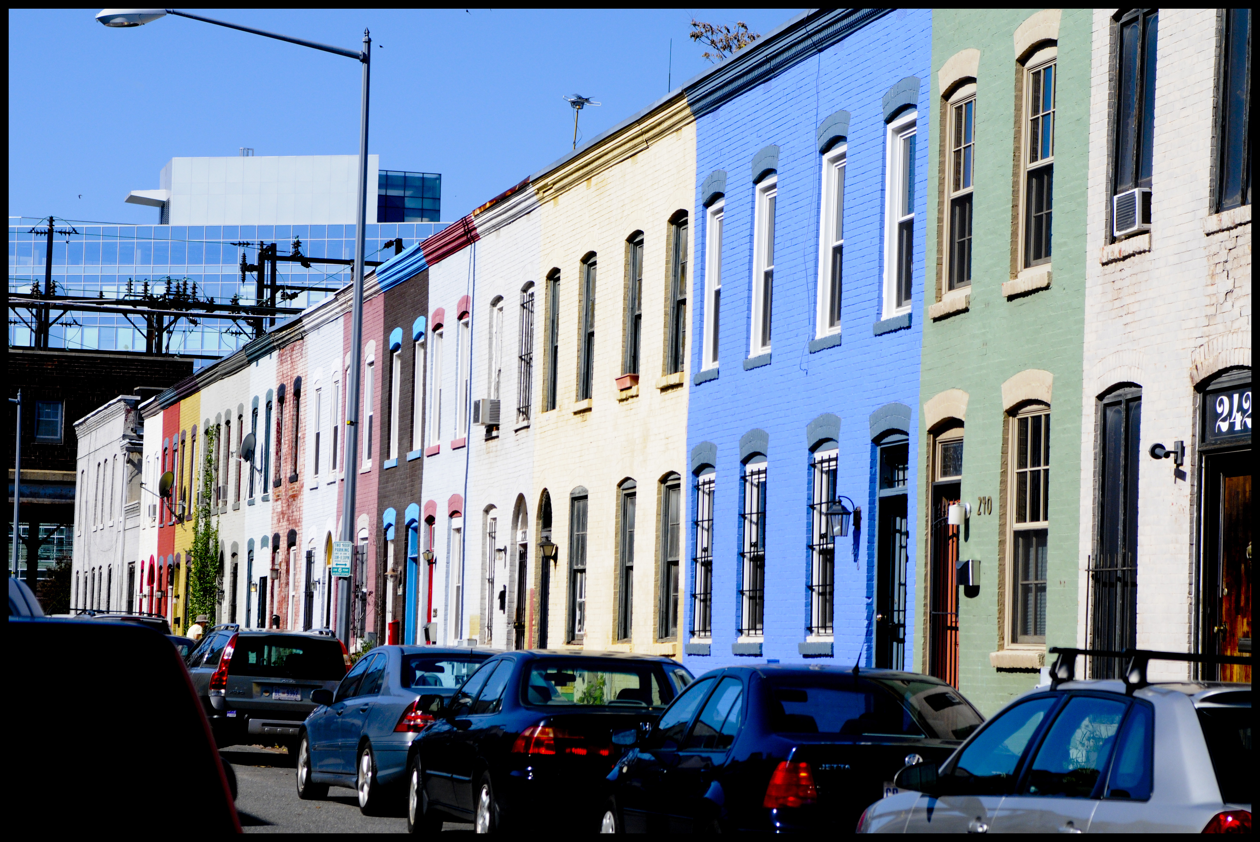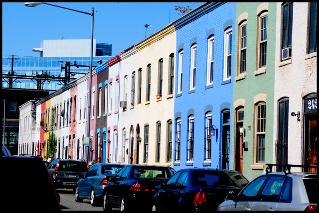 I can’t resist color. I have to move towards it, have to reorient myself to be closer to things that are vibrant. My favorite part of living in DC is running through the Capital Hill district and seeing all the colors, all the bright doors and bold awnings. The already vivid architecture contrasts with the changing gardens and seasons an it soothes my soul against many of the things that I am struggling to love in this city. This is my favorite street. I like how all the houses were built at once, one continuous brick structure, and then each dwelling was divided by color, was set apart by a bold hue. I like to run by it at sunset and see the way the light floods this street, flowing the colors out of the alley. Whoever painted these houses realized that life is sweeter when lived in color.