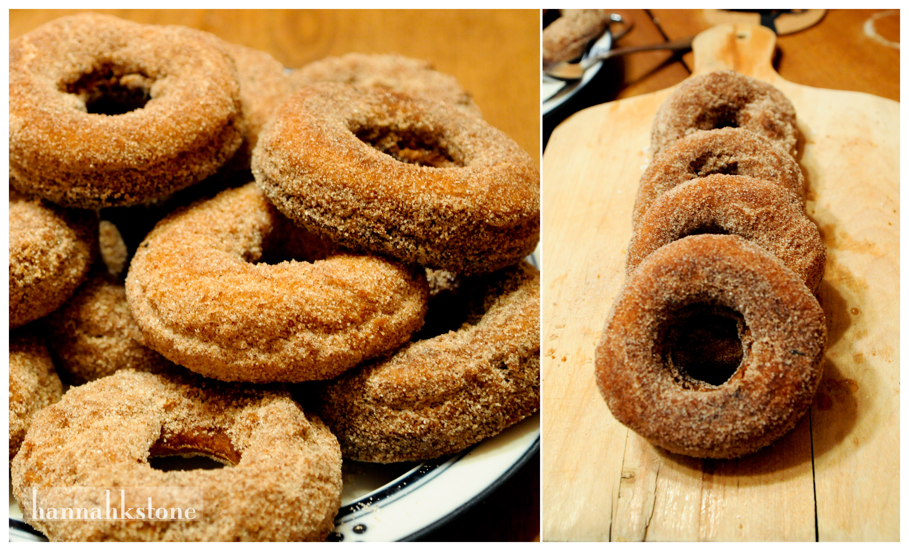 Lately there have been lots of doughnuts on Pinterest. (Oh wait, you aren’t on Pinterest yet? Whatever are you doing with your time? How are you surviving without being bombarded by images of things to buy, eat, or do? How are you blissfully unaware of your inferiority because you have yet to be confronted with a world of DIY that can never be accomplished by mere mortals?)  And I, ever a slave of impulse, have been obsessed with trying to make them.  After several thwarted attempts, I finally got around to making them the other night, with the help of my roommates and James.  Contrary to what the website says, we found them even better the next day. We also preferred the glazed ones, although some made it in both glaze and sugar. Life is short.