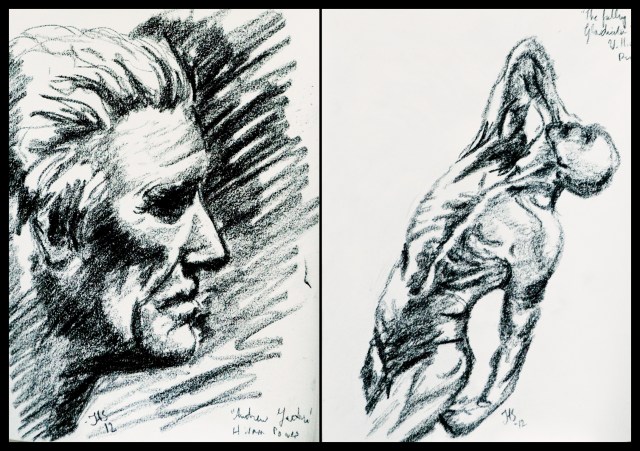 That last resolution is one of the biggest. Before I moved out here, I did lots of fun DC stuff when I visited James. But since moving out here I have let grad school consume my life and I take advantage of little that this city has to offer beyond pretty runs through Eastern Market and the occasional dinner out. These past two weekends I have started out on this new resolution. Last weekend I trekked out to Georgetown to visit a wonderful little French bakery with my friend Kim before heading in to the National Portraiture Gallery. I spent the middle part of the day sketching. Here are two of the quick sketches.