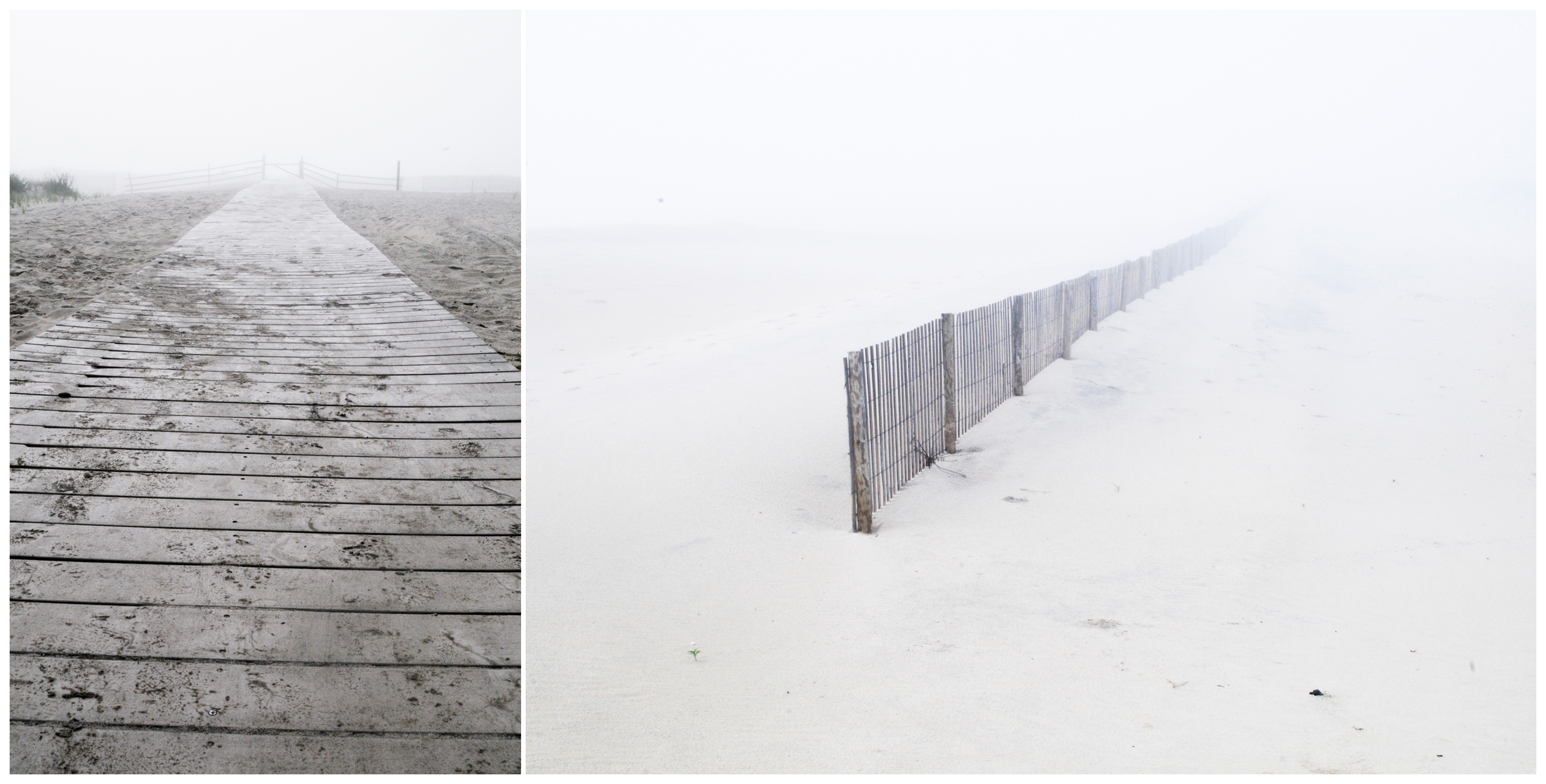 Assateague Island was the Hannah version of camping, the type where we parked and then lugged our stuff a couple hundred yards to set it up on the beach. Now usually camping at Assateague means frolicking on the beautiful beach in the sun and trying to hide your food from the ponies who will eat anything. But all of Saturday, the weather turned freakishly cold and foggy and the beach looked like this: