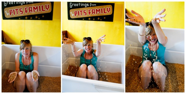 Third stop, The Cherry Republic. For those who don’t know (as in, me, a couple weeks ago), most of the nation’s cherries come from northern Michigan. Translation: Traverse City is an edible shrine to cherry goodness. In The Cherry Republic, we were able to sample every variety of cherry product: chocolate covered cherries, cherry salsa, cherry dusted tortilla chips (why yes, I do now require all my munchies dusted in cherry!), cherry jam, cherry chutney, cherry trail mix, etc. Furthermore, the chirpy saleslady informed me that anything in the store could be opened and sampled and I am pretty sure I abused that policy. I then further blew my cool cover by jumping in the giant bin of cherry pits to have my picture taken.