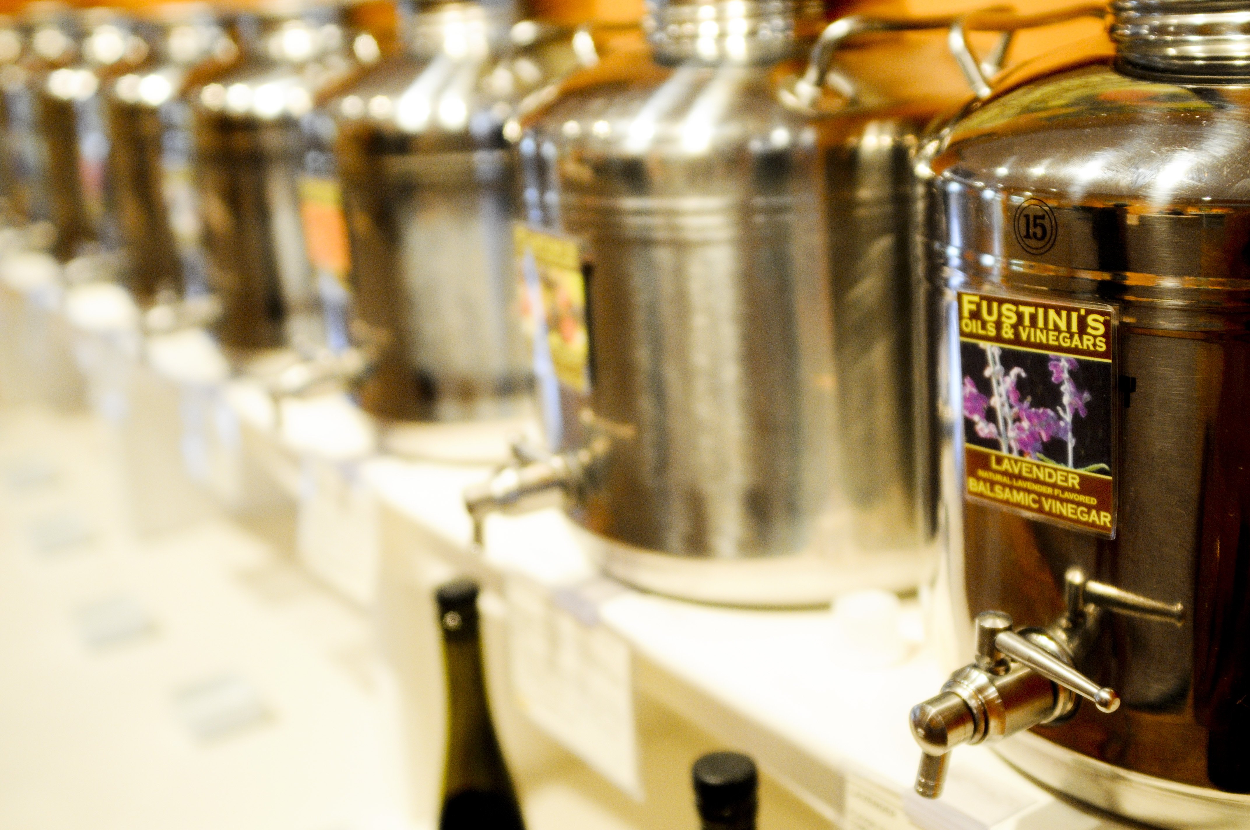Second stop, Fustini’s, home of a bazillion special balsamic vinegars and olive oils.