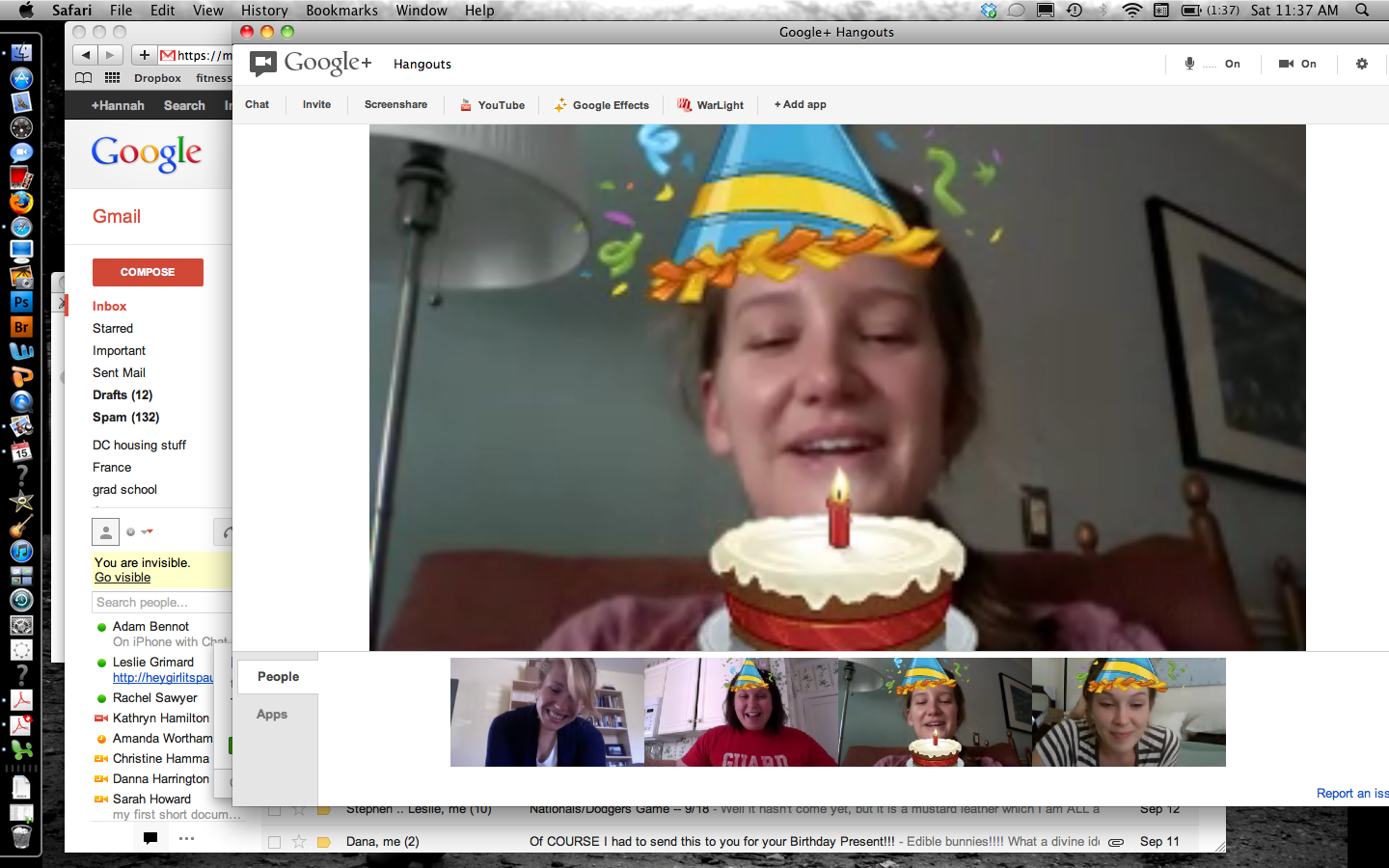 I am thankful for technology. ( And no – I don’t mean the iphone 5 that apparently came out this week. I think iphone updates are kind of like new facebook interfaces – unnecessary, confusing, and pointless, but eventually we all get tricked into thinking we need them. I shall content myself with my iphone 3. ) I usually hate technology, since it doesn’t work for me more times than it does, but even I am thankful for how it allows me to keep in touch with those I love and don’t see enough.