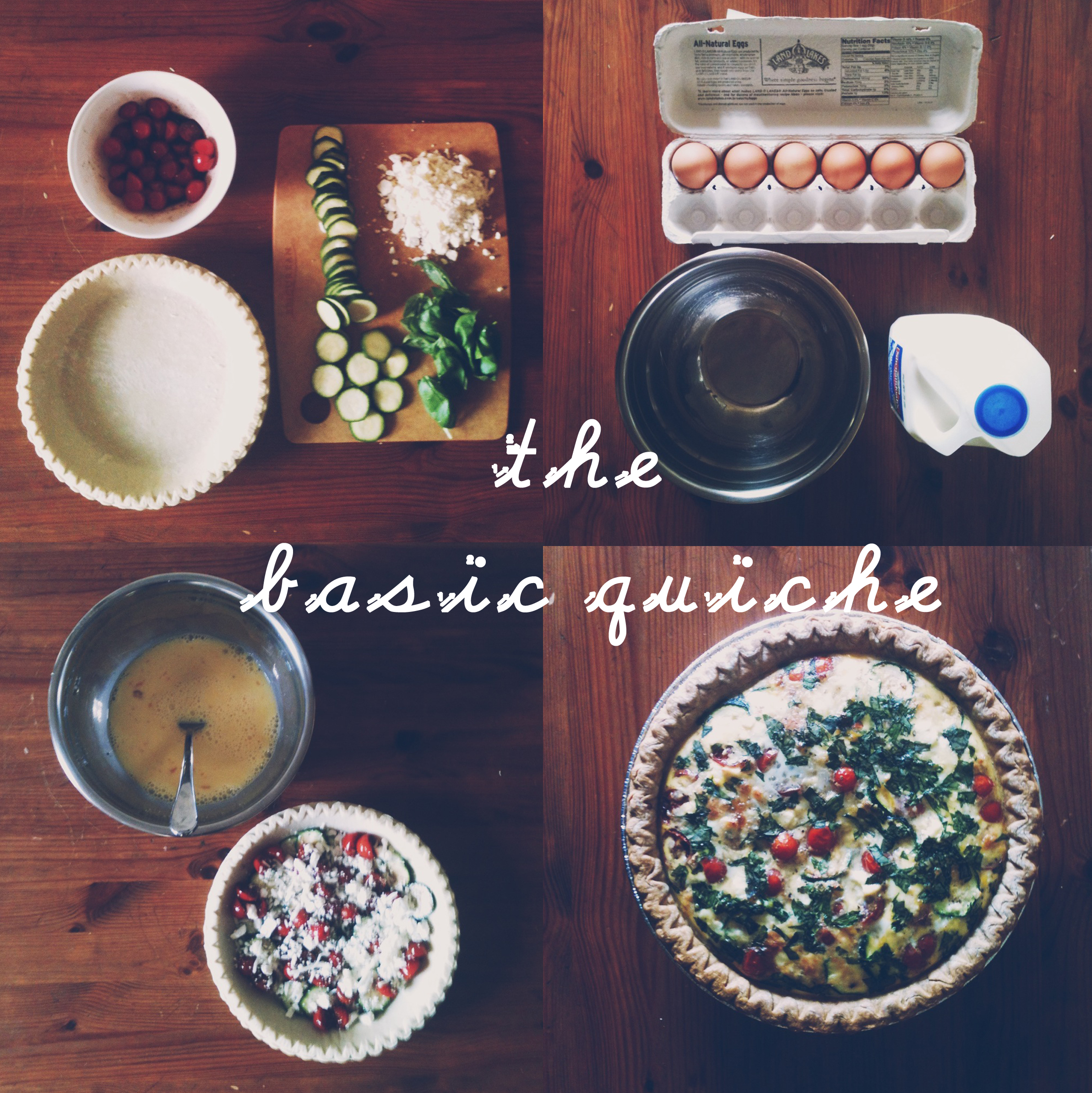 Sometimes we associate quiche with more classy dining, but really it is the most simple of all meals, as you just layer veggies and cheese, then dump some egg stuff over it. Here is my recipe for basic quiche, with this one ending up as a sliced zucchini, feta,  and balsamic soaked garlicky tomato quiche, topped with some fresh basil (a combination I stole from Rachel after she made it on my trip to Nashville). But really, any combination of veggies and cheeses can work. You know how I feel about goat cheese and fig, but that Brie and bacon (not a veggie… but oh so good!) one was pretty tasty too, and that roasted vegetable frittata is the same concept. Sometimes I substitute peppers for zucchini, or add mushrooms — basically anything to use up the odds and ends of veggies left in the fridge towards the end of the week.