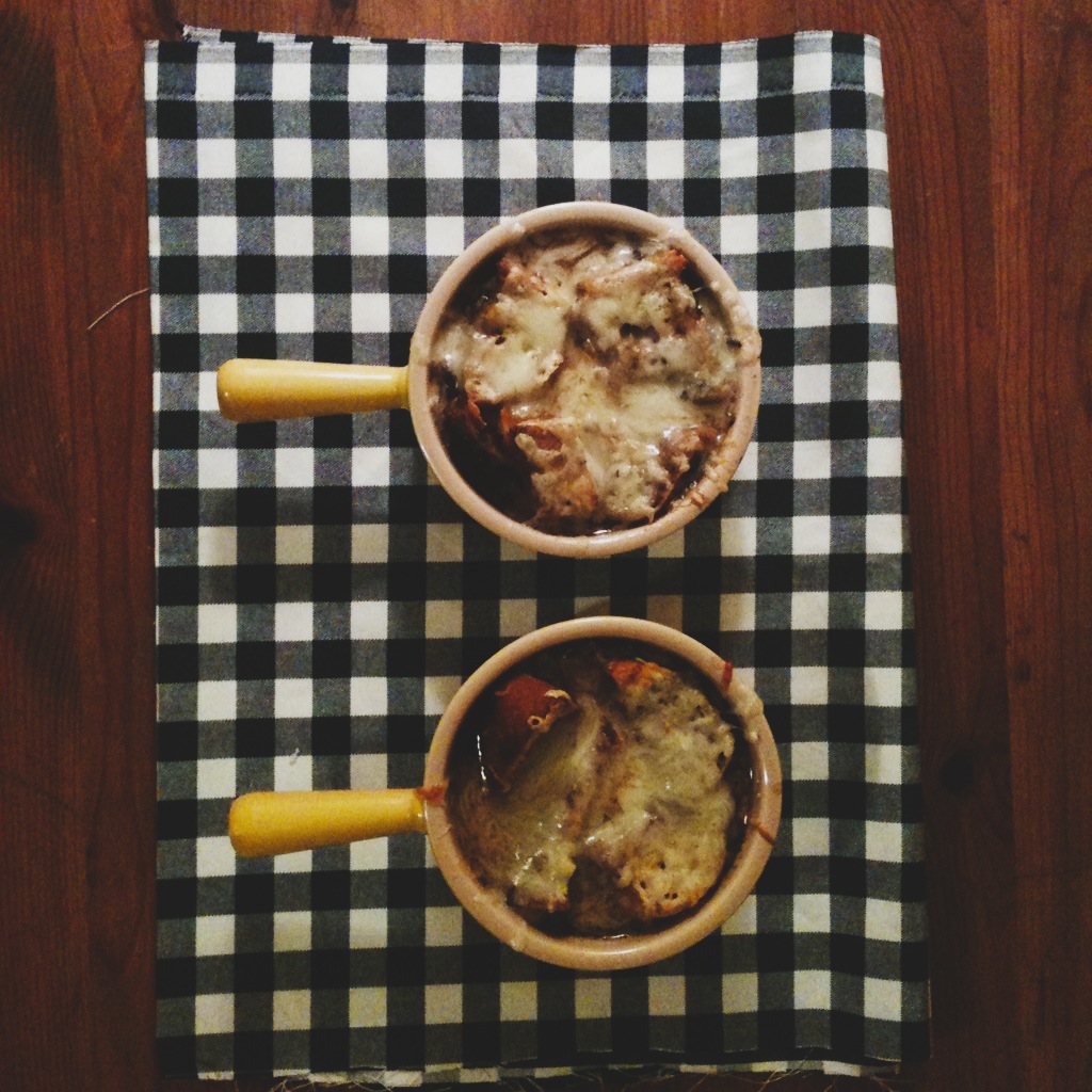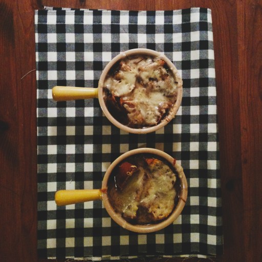 Whenever I visit James’ family in Indiana, I am reminded why he loves soup. James mom makes soup so delicious that you just want to swim in it, mouth wide open. Over Thanksgiving she made this five onion creamy soup goodness that I am pretty sure could save your soul.  She is one of those soup people, the type I want to be, who just makes soup with whatever is around. (She gave me her squash soup recipe, so I am hoping it will free me from my baby food rut, but there is a strong chance I will mess it up.) My friend Leslie is the same way, just cooking everything up into a delicious spoon-it-up feast.  For me, making soup is more stressful than most other things.  See these beautiful bowls of French onion soup?