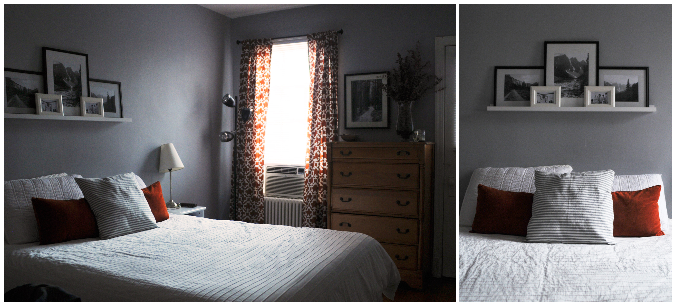 It was the only room we were able to paint, so a lot of thought went in to it. Also, there were very few curtains we could agree on, so after picking the gray walls and finding those curtains from target, we just kind of built the rest of the room around it.