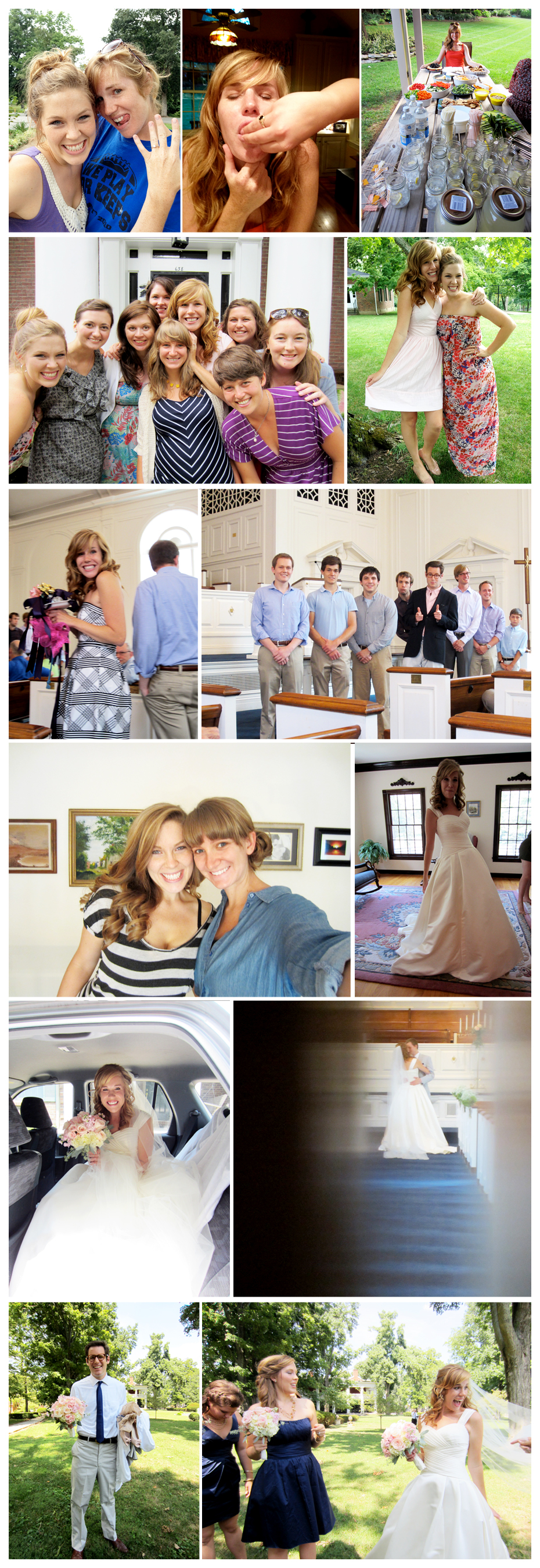 Over Christmas break, my friend Rachel passed on some pictures that she took the week of the wedding. Now, we have 600+ stunning photos from our actual photographer that we love so we really don’t need any more photos. But looking through the pictures Rachel took was so much fun because she took the non-professional type, where she has captured every awful or awkward expression that anyone made all weekend. They were the sniper style photos, taking while we were goofing around, and with such an un-intimidating camera that we didn’t feel the need to stop. These won’t be the type that fill frames on my walls… but I can’t stop smiling and laughing every time I look through them.