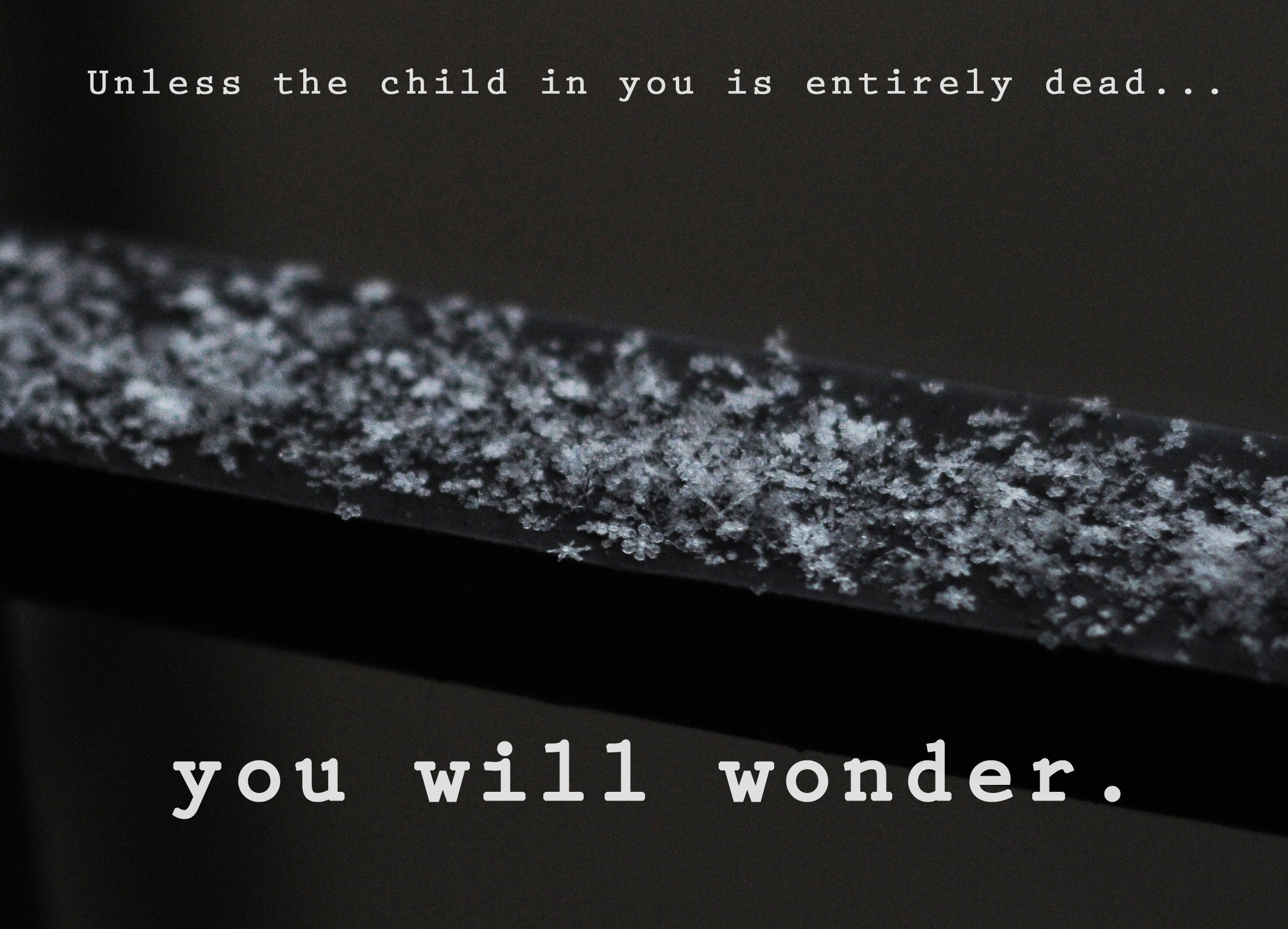 If it’s been awhile, go find a single snowflake and look at it. Unless the child in you is entirely dead, you will wonder. Wonder is the very best response when faced with individual snowflakes.