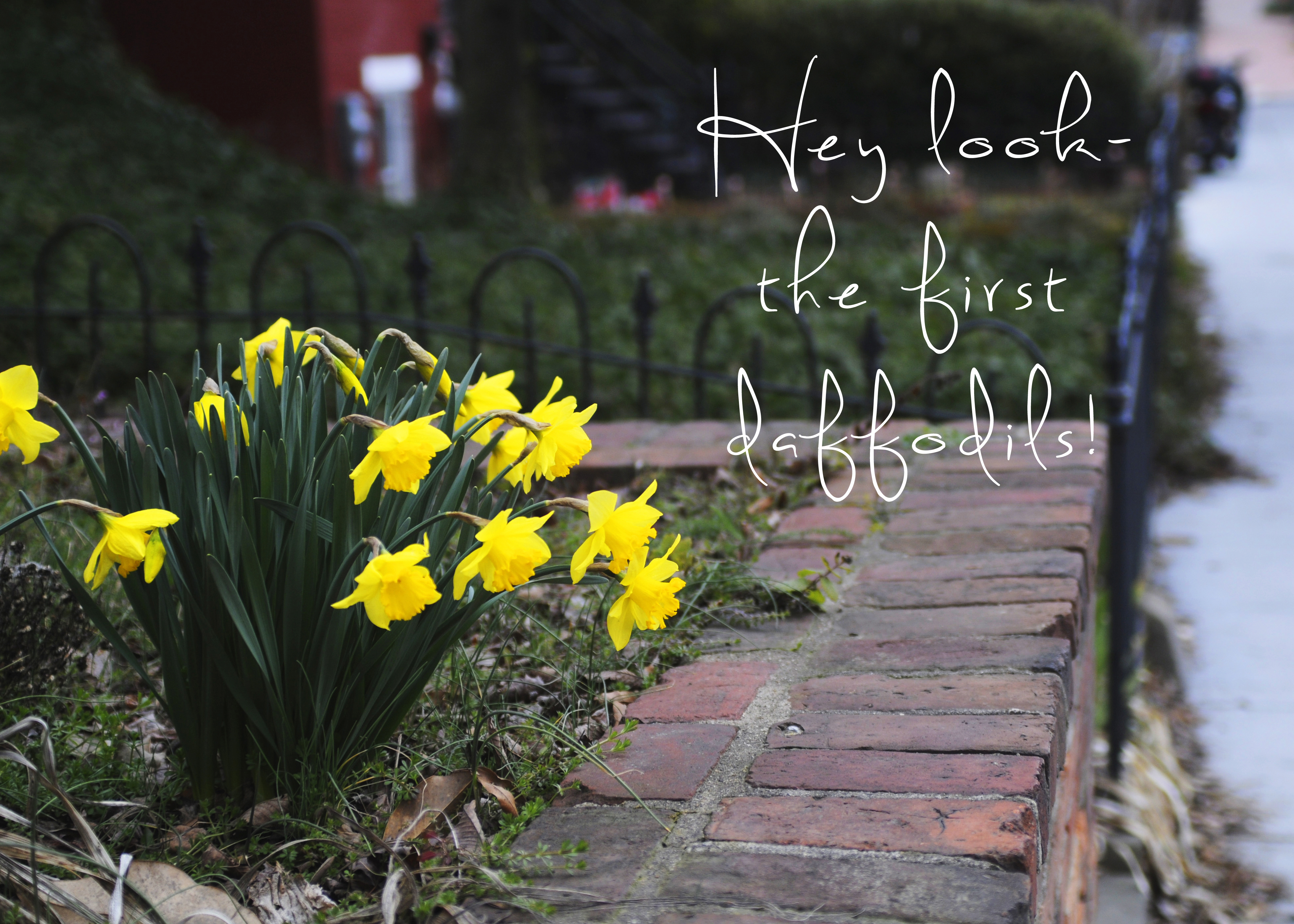 Hi there. I know it’s been a long time since we’ve seen each other, but this is just a friendly note to say COME BACK NOW. Or else. I was pretty sure there for awhile that you were trying to come. I saw the first daffodils in bloom this weekend, but then Winter showed up again and scared you off. Stop being a whimp. Stand your ground. Because I am officially tired of all my winter clothes and I am almost at the point of wearing sundresses with mismatched winter sweaters a-la-Lorelai Gilmore. You do not want that fashion disaster on your conscience. I’m tired of my flannel sheets, my flannel pants, my puffy coat, and my sad winter dry hair. I want to use my porch for more than bike storage. I think I can take the liberty to speak for everyone when I say that WE ARE READY.
