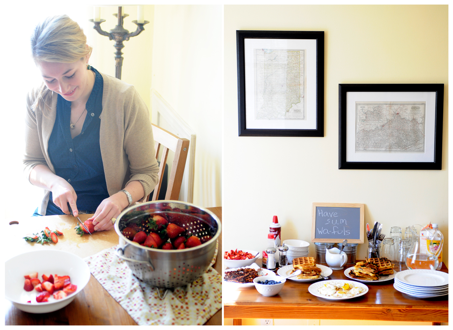Last weekend they were passing through DC so I took [another] weekend off from school work to spend some time with them. We showed them the best that DC weekends have to offer, which is to say we had friends over and gorged ourselves on waffles and then went on a very long sunny walk. Please note that awesome chalkboard sign my mom wrote, complete with the trendy misspelling that people do these days.