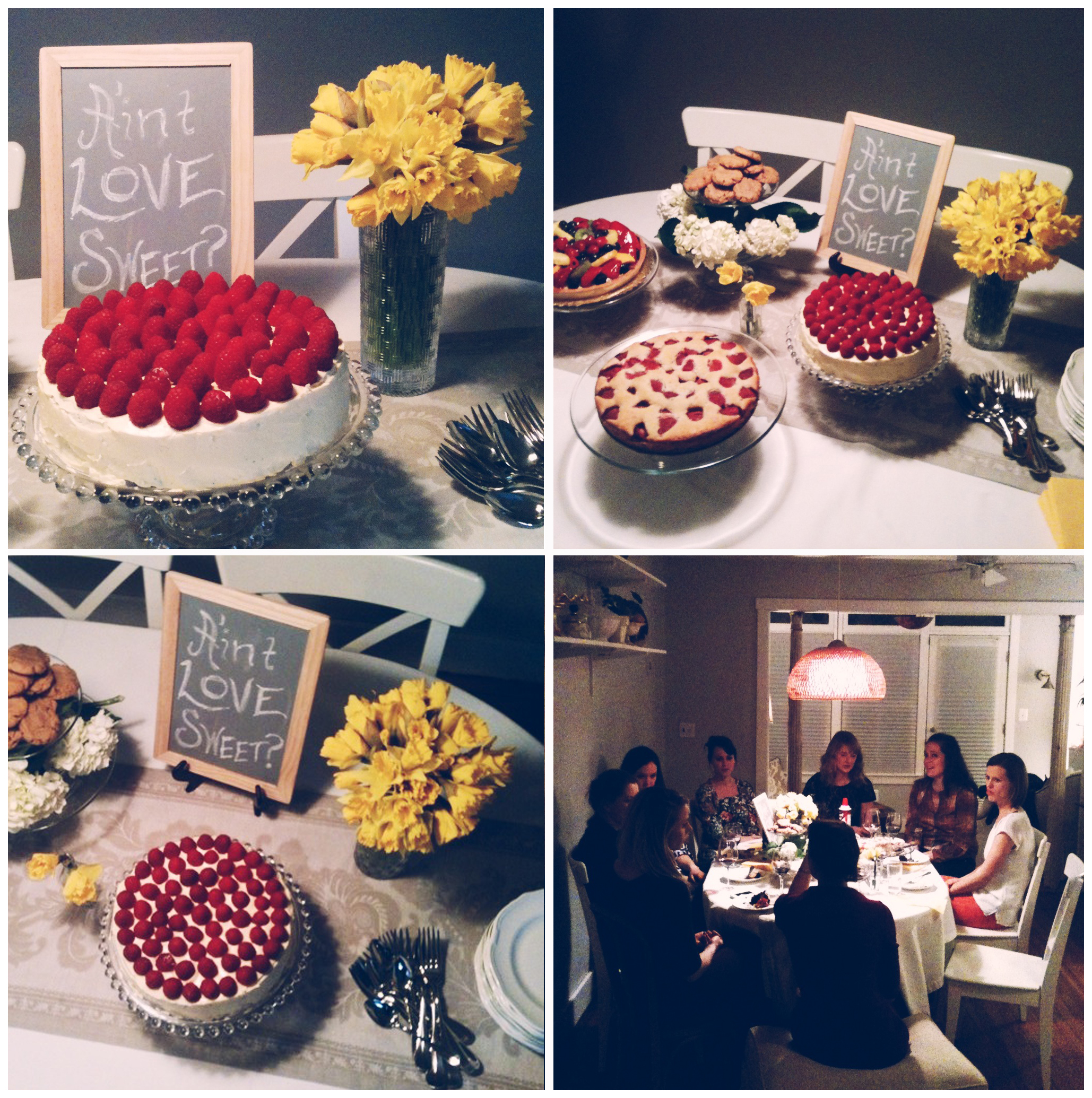 In case you were wondering, that amazing cake with the raspberries on it is sugar free, flour free, and otherwise paleo. Oh and it tastes like MAGIC rather than sawdust. The recipe was provided by Christine’s amazing cook nutritionist sister (check out all the recipes on her blog!) and you can find it here, with the frosting here. The strawberry cake was this one that I can’t get enough of and the coconut peanut butter cookies are here. That awesome fruit tart was handmade by the fine people of Trader Joe’s.