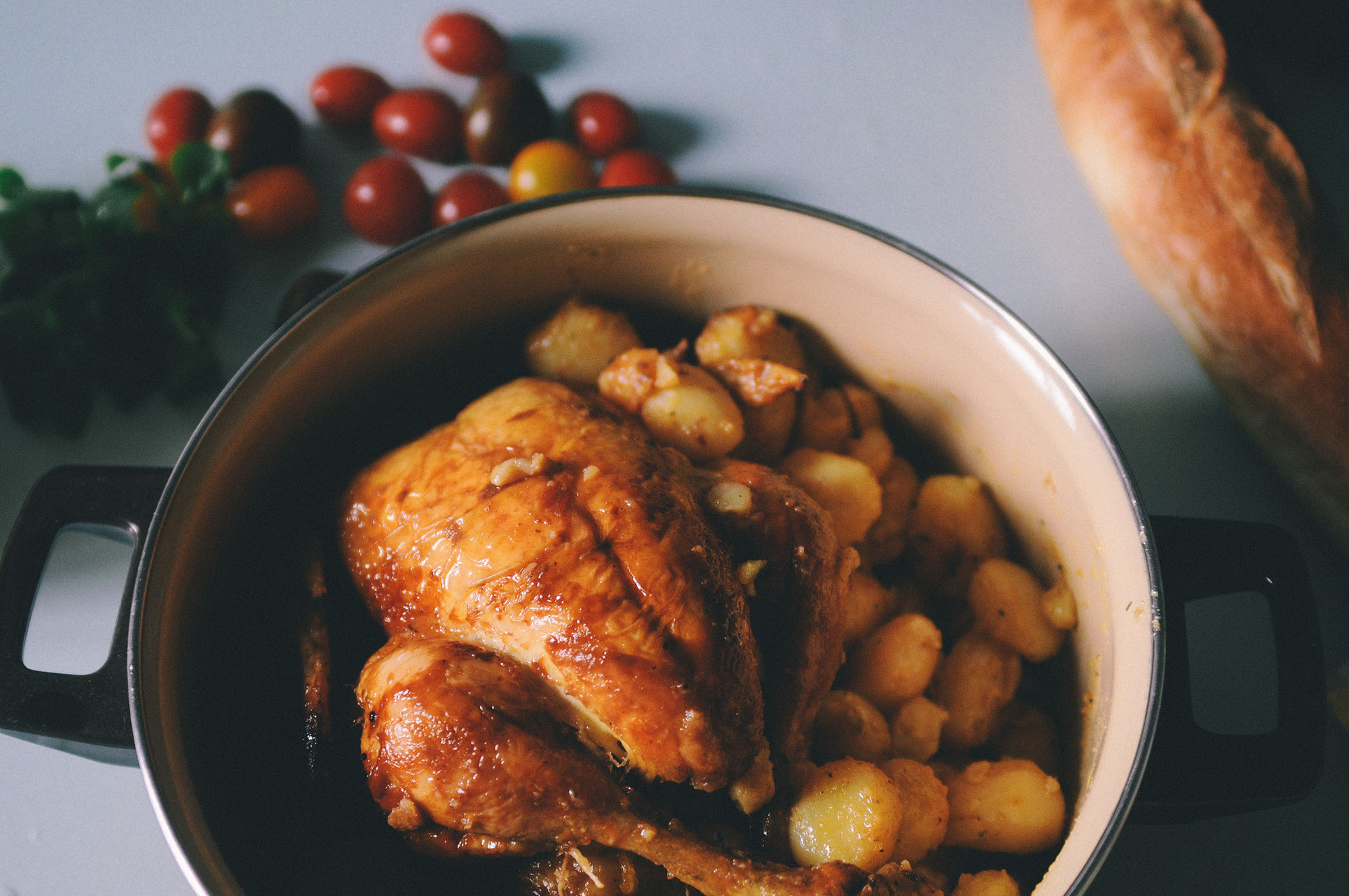 I wanted it to be more like Deb’s Smitten Kitchen Cookbook, where, even if not a memoir, every recipe starts with the story that produced it. Because that is what our stories do, they drive us to the table and inspire what we spread across it. In one of my favorite recipes from Deb’s book, she recreates roasted chicken and potatoes similar to something she had in Paris. Not from a restaurant, but purchased from a street vendor that sells rotisserie chickens and the buttery potatoes cooked in their drippings. Deb’s description of that taste, that feeling, that greasy bag that she carried back to their apartment, stayed with me and last week, I had to have one of those chickens. I bought my chicken, carried it home through the cobblestone streets and ate it with two friends at the kitchen table. There were no place cards, no menus, not even any real cooking, since we paired it with salad and baguette. But we stayed around that table for a while, reaching back into the pot to pull out one more potato, one last bite of chicken. And that is the point: to be nourished, body and soul.