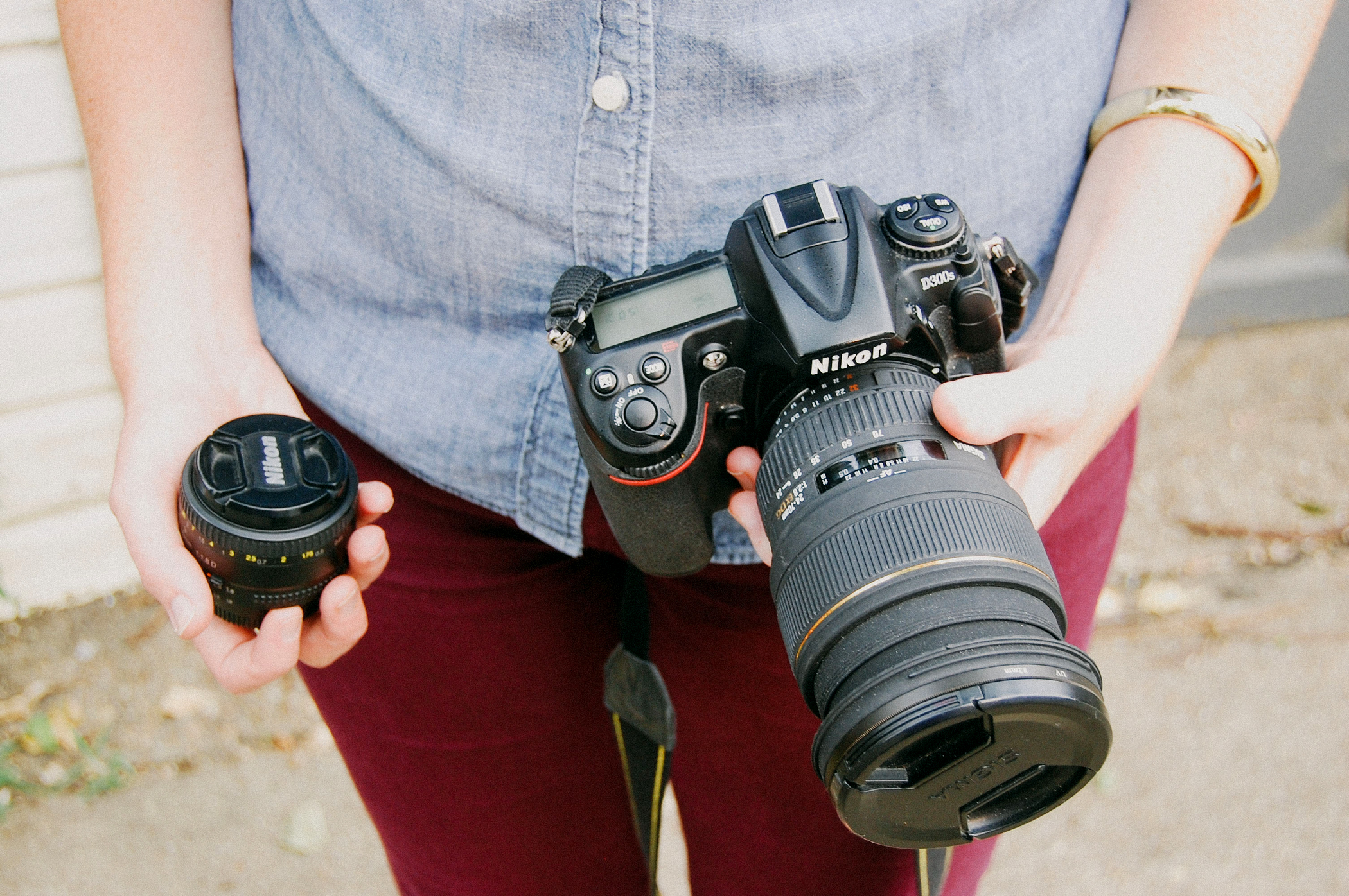 • I either use a Sigma 24-70mm lens or a 50mm 1.8 prime lens, which is awesome because it is way smaller and makes the camera fit in my purse better. And yes, that is the main reason I started using it. Priorities.