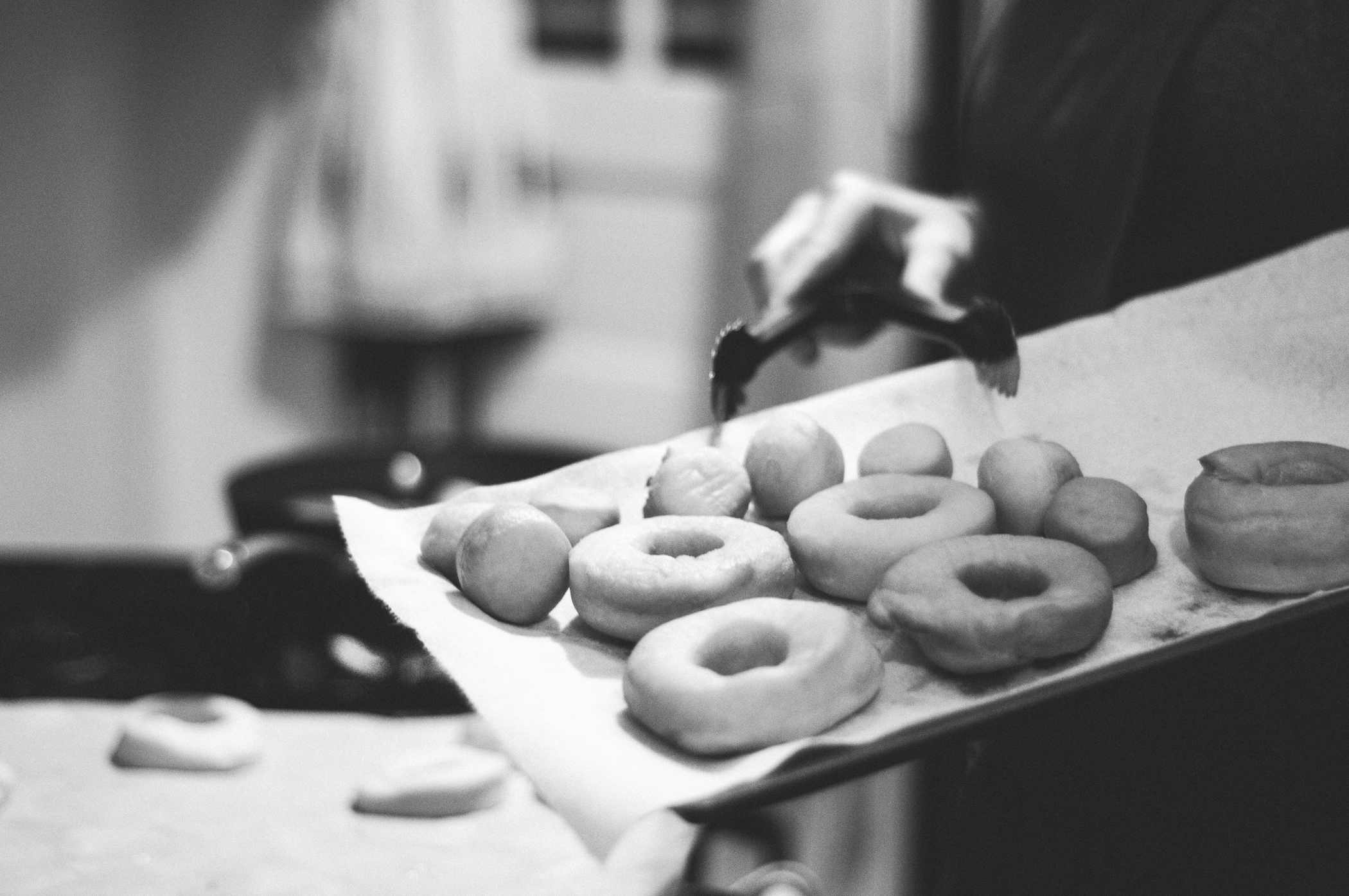 This past Saturday was the Fourth Annual Donut Making Extravaganza. There were too many people in our living room, too many donuts in our bellies, grease splattered all over my kitchen, and long line of glaze that somehow made it the entire length of our entryway. It was all appropriately glorious.