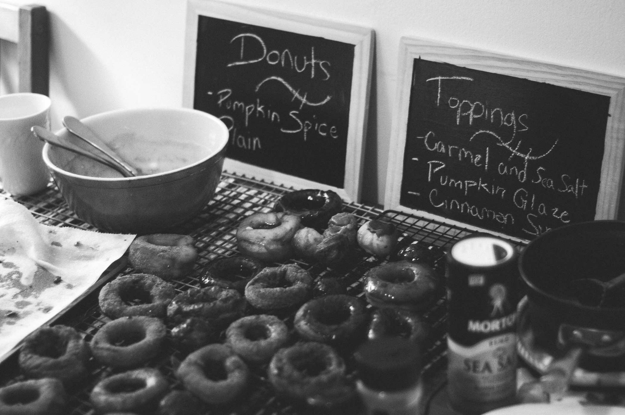 (Note: In case you want to fry along, we made these pumpkin donuts as always and also tried these salted caramel topped yeast donuts. On the latter, we loved the donut but were not so crazy about the overly woodsy caramel sauce. And if you are reading thisand growing concerned about my nutrition, you should know that this weekend did me in, and Sunday night had me in the fetal position moaning. Worth it.)