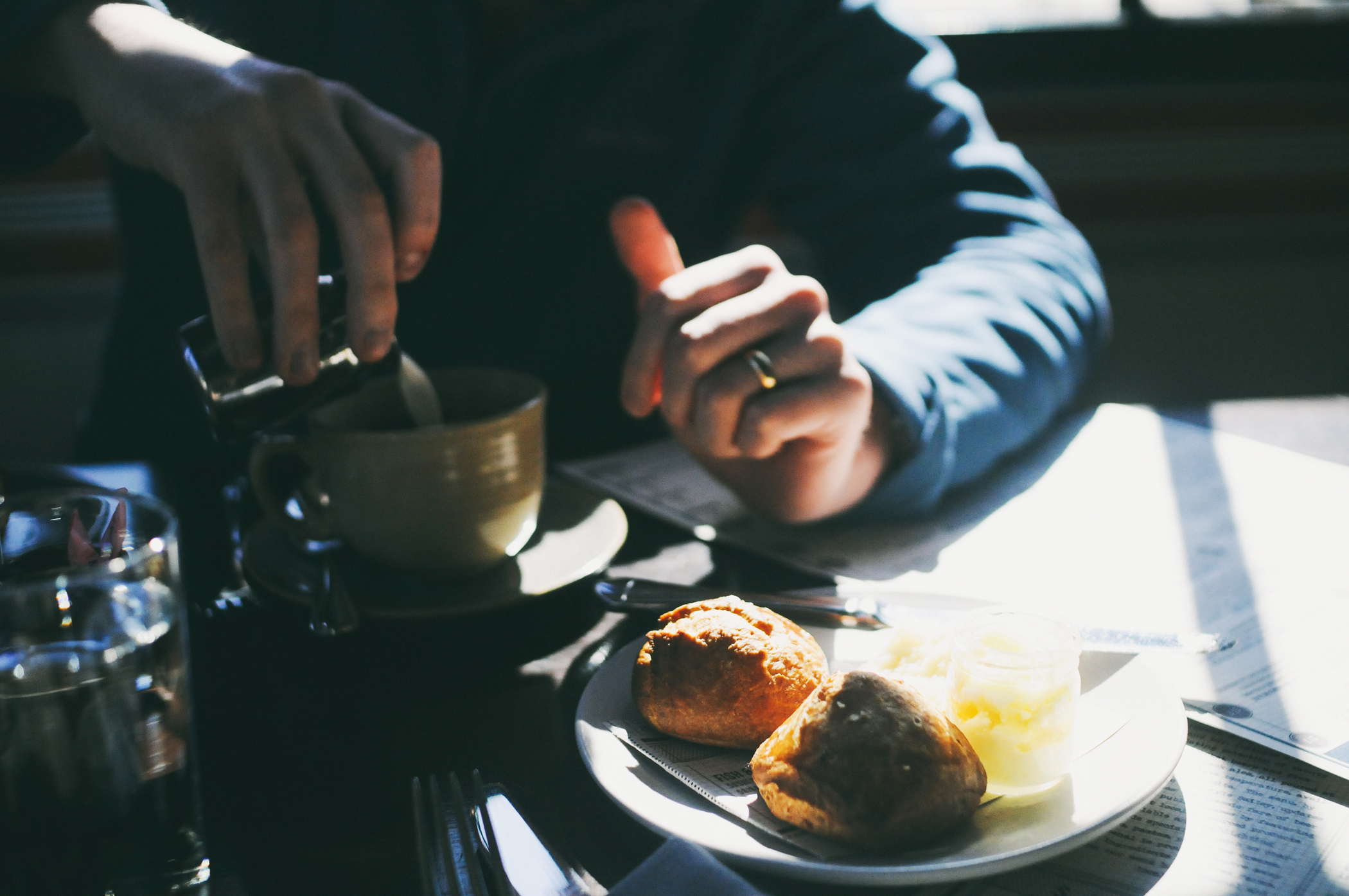 We tried out a new place for brunch on Sunday, because if there is something more romantic than fiscal responsibility, it’s biscuits and butter that you didn’t have to wait for because you actually remembered to roll over groggily in bed Sunday morning and make brunch reservations before church.