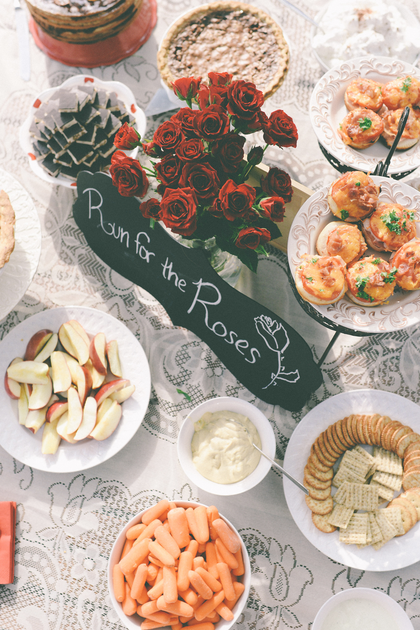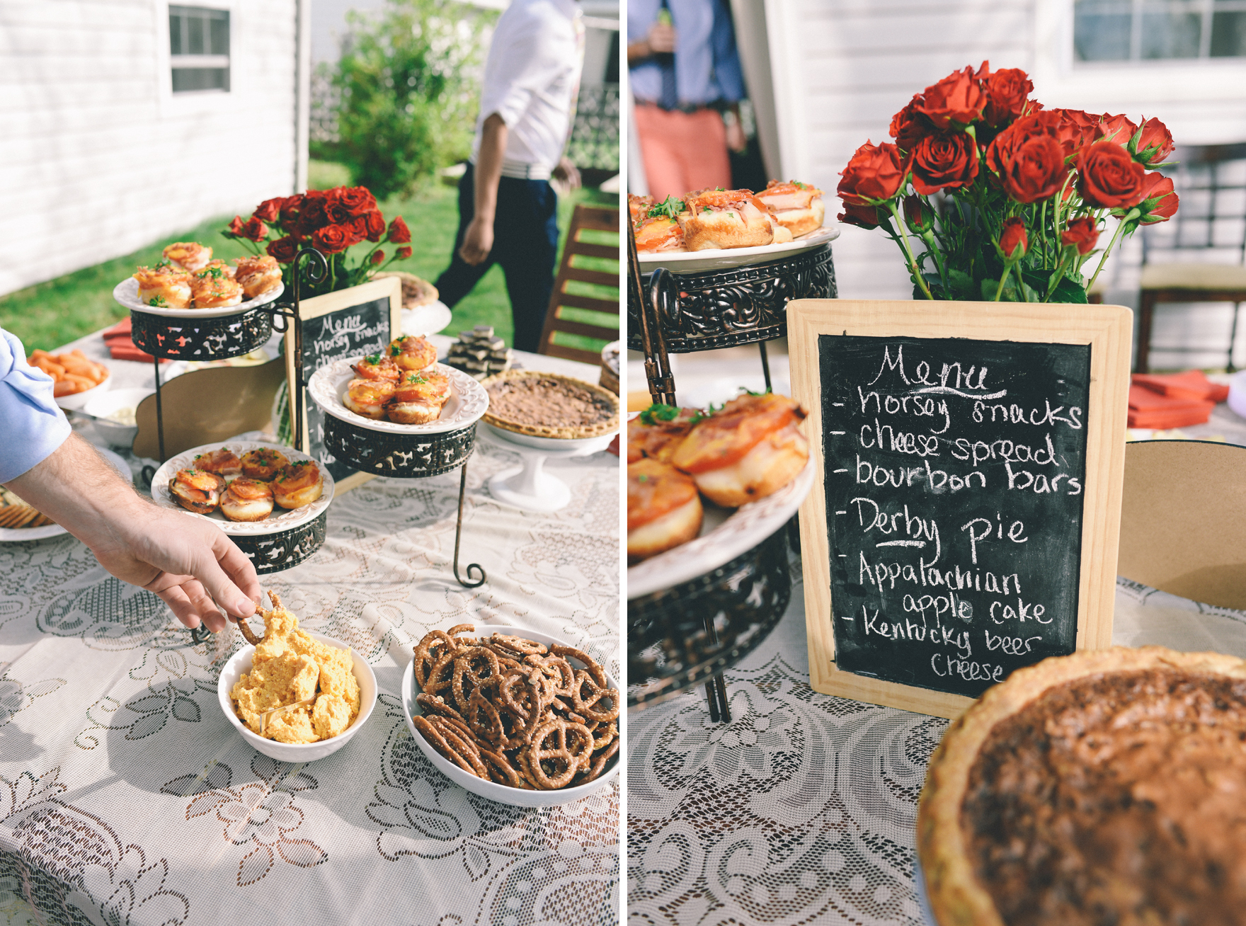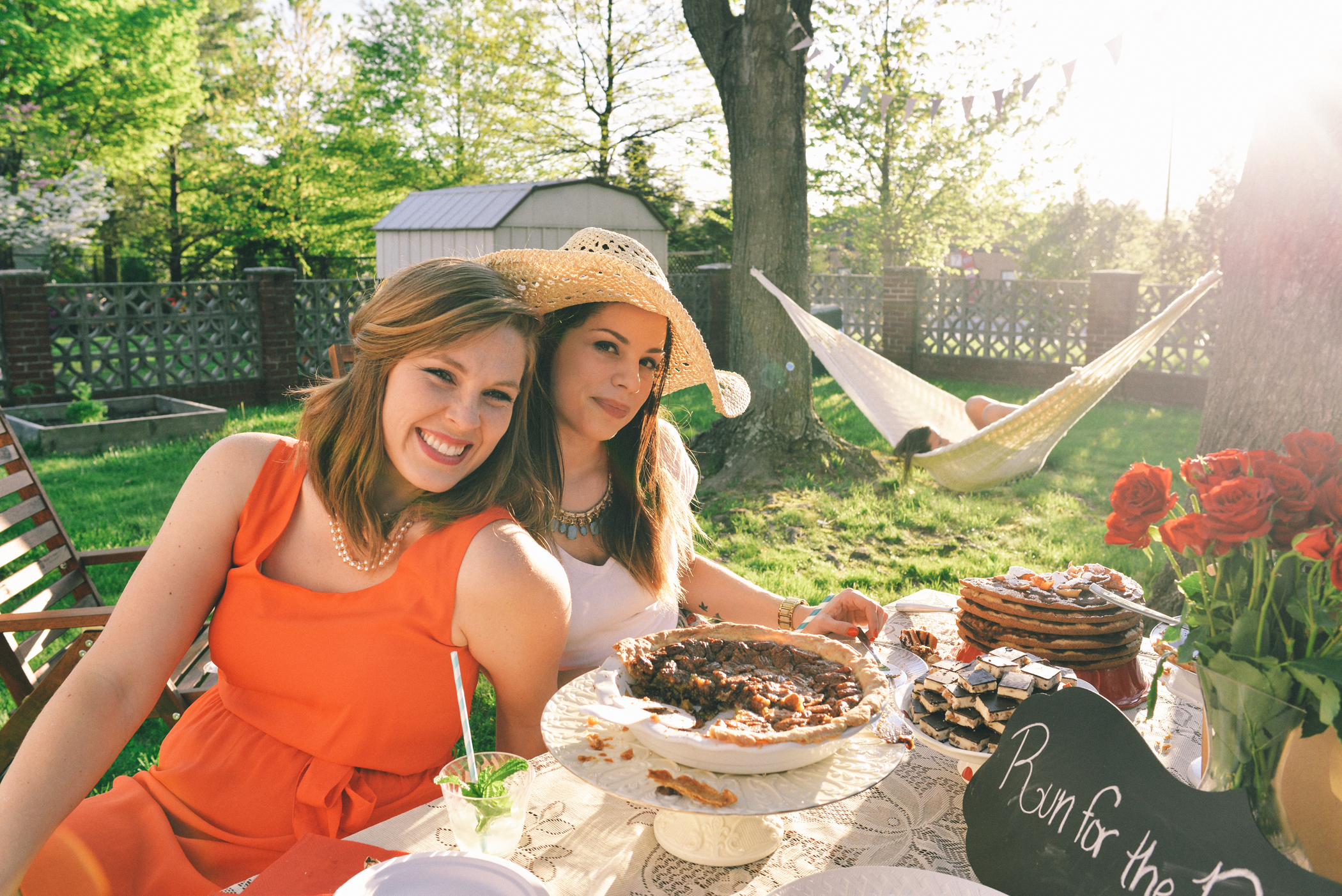 Despite my general love for Washington and our life here, Kentucky will always have my heart. You better believe that I would hightail it back to the Bluegrass state in an instant if the opportunity presented itself.  This love prompts lavish and extreme excitement over Kentucky-centered events that often passed more or less unnoticed when I was actually within its blessed borders. Thus, while we have never actually attended the Derby, some of my fellow Kentucky DC-based diaspora came together to throw a party for the Kentucky Derby.Derbyday-21Derbyday-4Derbyday-2Derby hats… excellent for hiding the hair that was not exactly on point because I burnt my finger on the iron on the first curl and promptly gave up. Derbyday-6 Derbyday-8 Derbyday-10Of course, like all celebrations, this one was a clever ruse to eat all the tastiest treats. I’m pleased to say that our Kentucky crew and adopted natives represented with all the classics. Derby pie (x3!), bourbon balls, beer cheese, horsey treats, mint julep punch, Appalachian apple cake, and mini hot browns, just to name a few.Derbyday-11 Derbyday-12 Derbyday-17In marriage, you learn to pick your battles.  I learned in the first year that getting James in a bow-tie was just not a battle worth picking. Which is why I’m doing the bordering-on-scary smile of excitement that he donned that dapper orange bow for the party.Derbyday-18 Derbyday-20Though not everyone would consider bunting an important thing to keep on hand, I have found that whipping out yards of homemade bunting at a moments notice can only ever improve the situation. Bless that husband of mine, who has nobly climbed up on many a ladder to hang and rehang bunting over the course of our relationship.  Derbyday-24 Derbyday-25 derbypartyDerbyday-26 Derbyday-30 Derbyday-32That my friends, that is Derby Pie bliss face.  I wore that face all evening… and the next afternoon… and the following morning for both breakfast and afternoon snack. Should you be interested in getting your own Derby Pie bliss face on, I’m sharing the recipe that we used. And by we, I really mean my friend Rachel, as I managed to make very little/ none of the food for this fête. Therefore, even if the horse I was rooting for thanks to our blind buy-in lost (poor Materiality!), I’m pretty sure I was a winner. I wish there were more pictures of this amazing pie, but alas, I was too focused on eating it.Derbyday-33