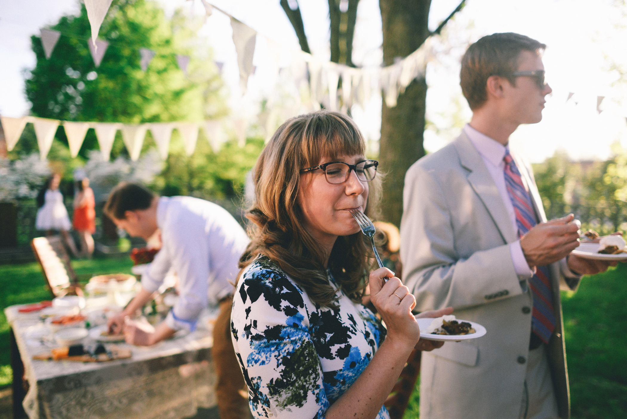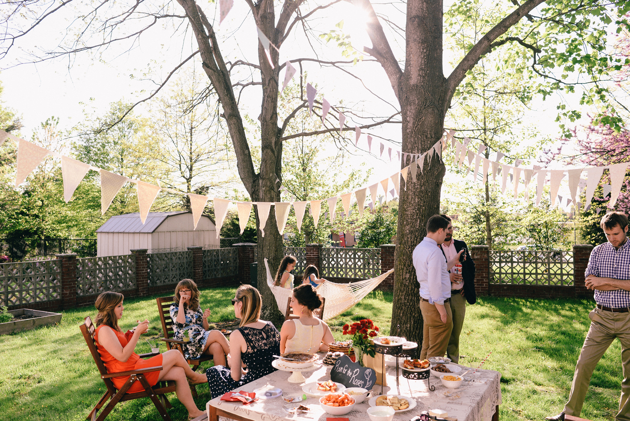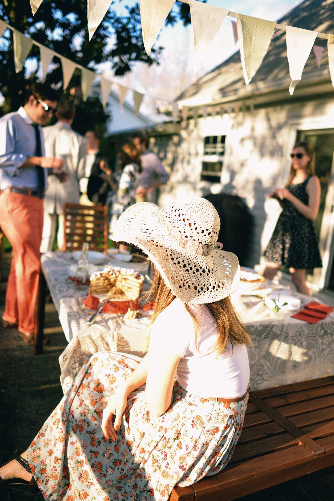 Despite my general love for Washington and our life here, Kentucky will always have my heart. You better believe that I would hightail it back to the Bluegrass state in an instant if the opportunity presented itself.  This love prompts lavish and extreme excitement over Kentucky-centered events that often passed more or less unnoticed when I was actually within its blessed borders. Thus, while we have never actually attended the Derby, some of my fellow Kentucky DC-based diaspora came together to throw a party for the Kentucky Derby.Derbyday-21Derbyday-4Derbyday-2Derby hats… excellent for hiding the hair that was not exactly on point because I burnt my finger on the iron on the first curl and promptly gave up. Derbyday-6 Derbyday-8 Derbyday-10Of course, like all celebrations, this one was a clever ruse to eat all the tastiest treats. I’m pleased to say that our Kentucky crew and adopted natives represented with all the classics. Derby pie (x3!), bourbon balls, beer cheese, horsey treats, mint julep punch, Appalachian apple cake, and mini hot browns, just to name a few.Derbyday-11 Derbyday-12 Derbyday-17In marriage, you learn to pick your battles.  I learned in the first year that getting James in a bow-tie was just not a battle worth picking. Which is why I’m doing the bordering-on-scary smile of excitement that he donned that dapper orange bow for the party.Derbyday-18 Derbyday-20Though not everyone would consider bunting an important thing to keep on hand, I have found that whipping out yards of homemade bunting at a moments notice can only ever improve the situation. Bless that husband of mine, who has nobly climbed up on many a ladder to hang and rehang bunting over the course of our relationship.  Derbyday-24 Derbyday-25 derbypartyDerbyday-26 Derbyday-30 Derbyday-32That my friends, that is Derby Pie bliss face.  I wore that face all evening… and the next afternoon… and the following morning for both breakfast and afternoon snack. Should you be interested in getting your own Derby Pie bliss face on, I’m sharing the recipe that we used. And by we, I really mean my friend Rachel, as I managed to make very little/ none of the food for this fête. Therefore, even if the horse I was rooting for thanks to our blind buy-in lost (poor Materiality!), I’m pretty sure I was a winner. I wish there were more pictures of this amazing pie, but alas, I was too focused on eating it.Derbyday-33