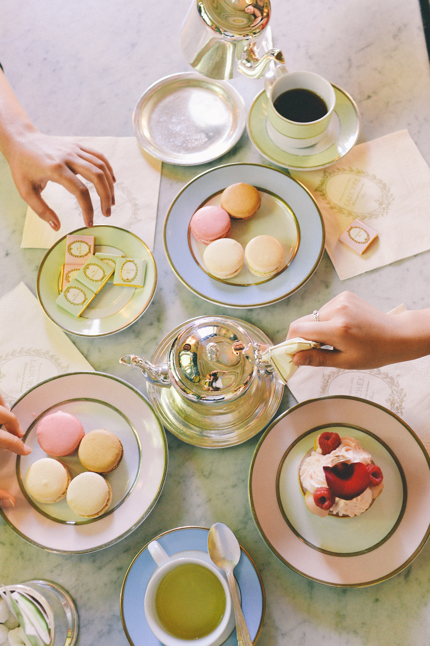 - Headed to the Arc de Triomphe, where we walked around the base, and then some shopped, some walked around, and some had over-priced sweets and tea at Ladurée. (I’m sure you all know which group I was in… but hey – free clean restrooms!)