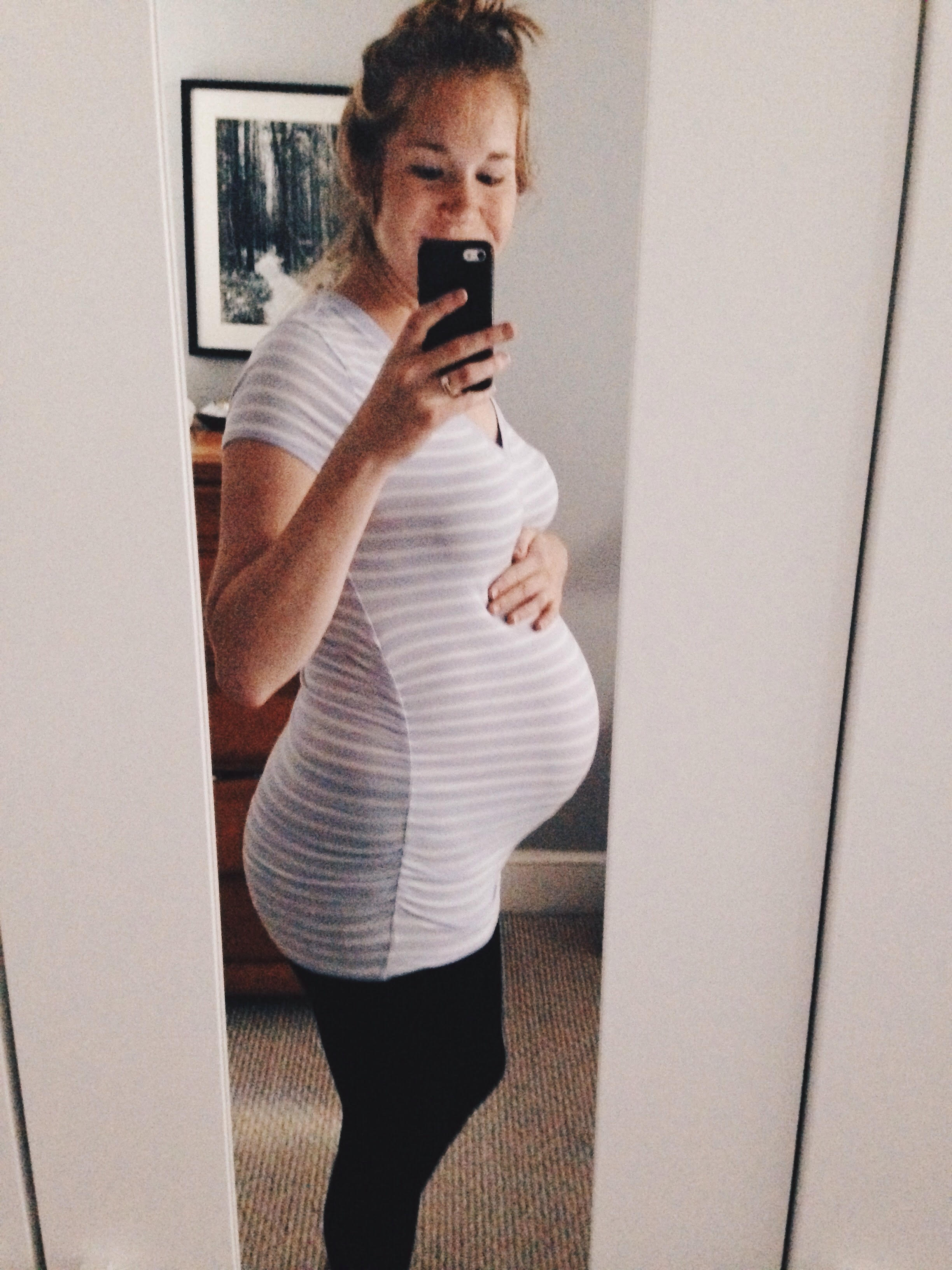 On Tuesday I texted a bunch of my girlfriends the following picture with the very ambitious caption of “38 weeks and hopefully the last bump shot ever!”