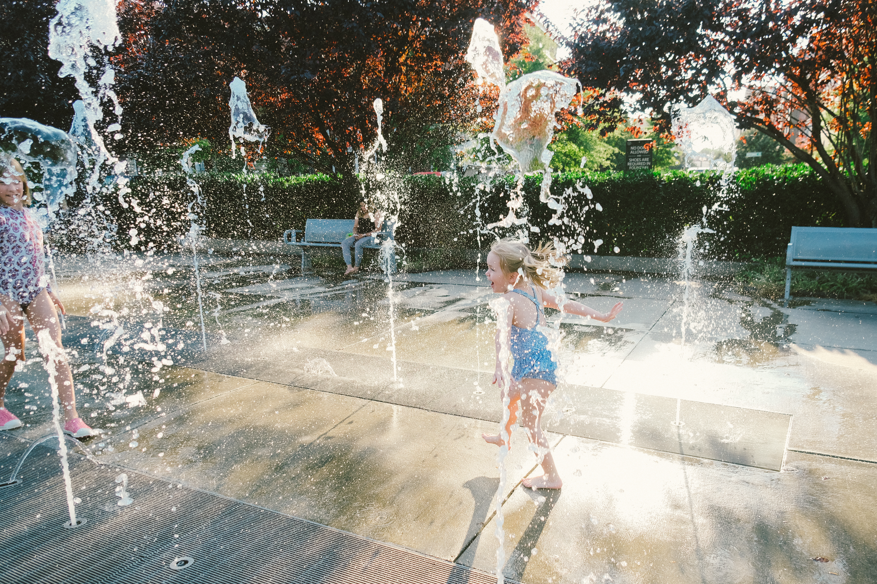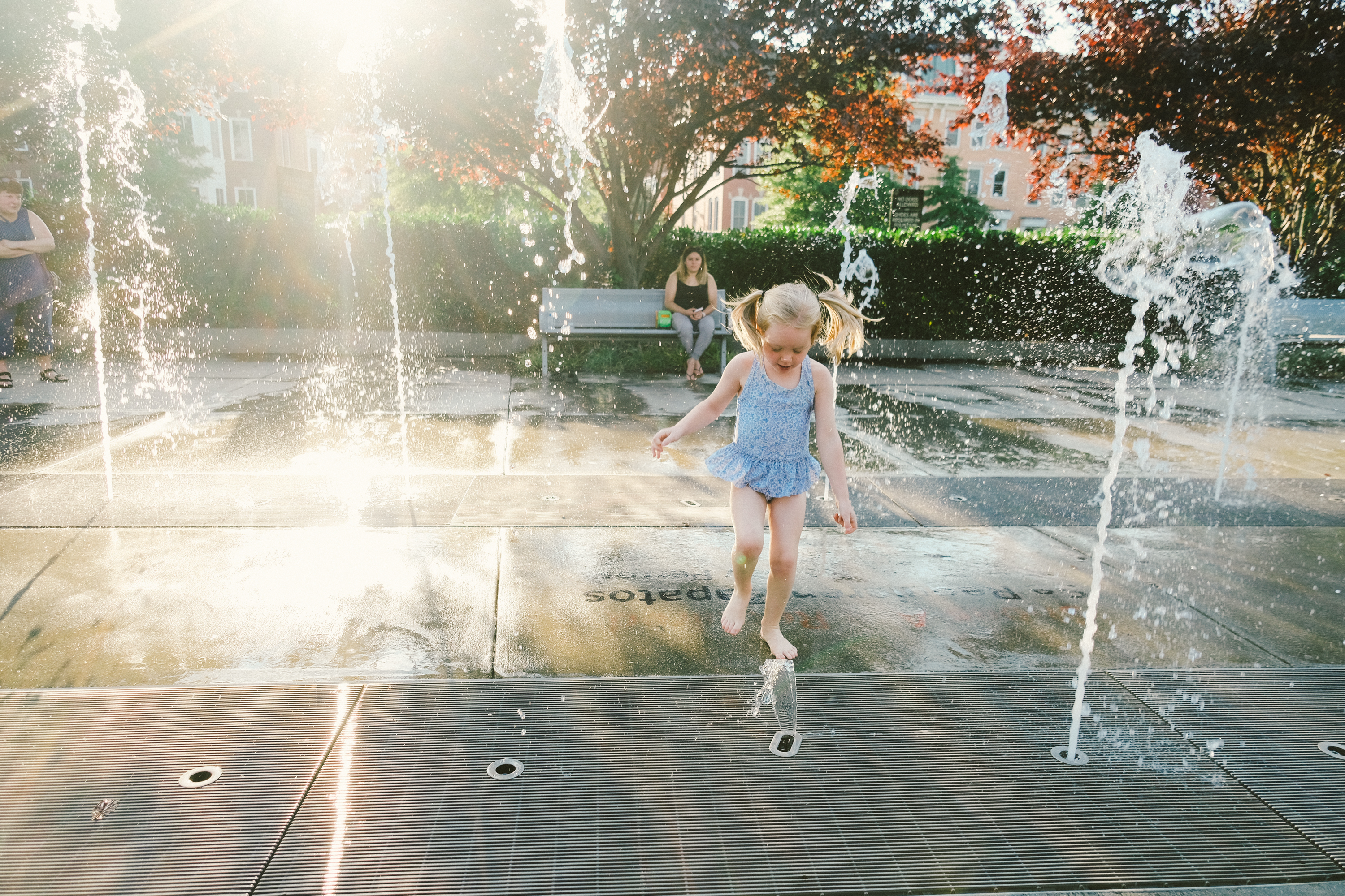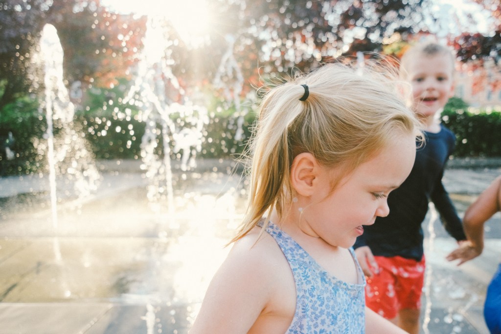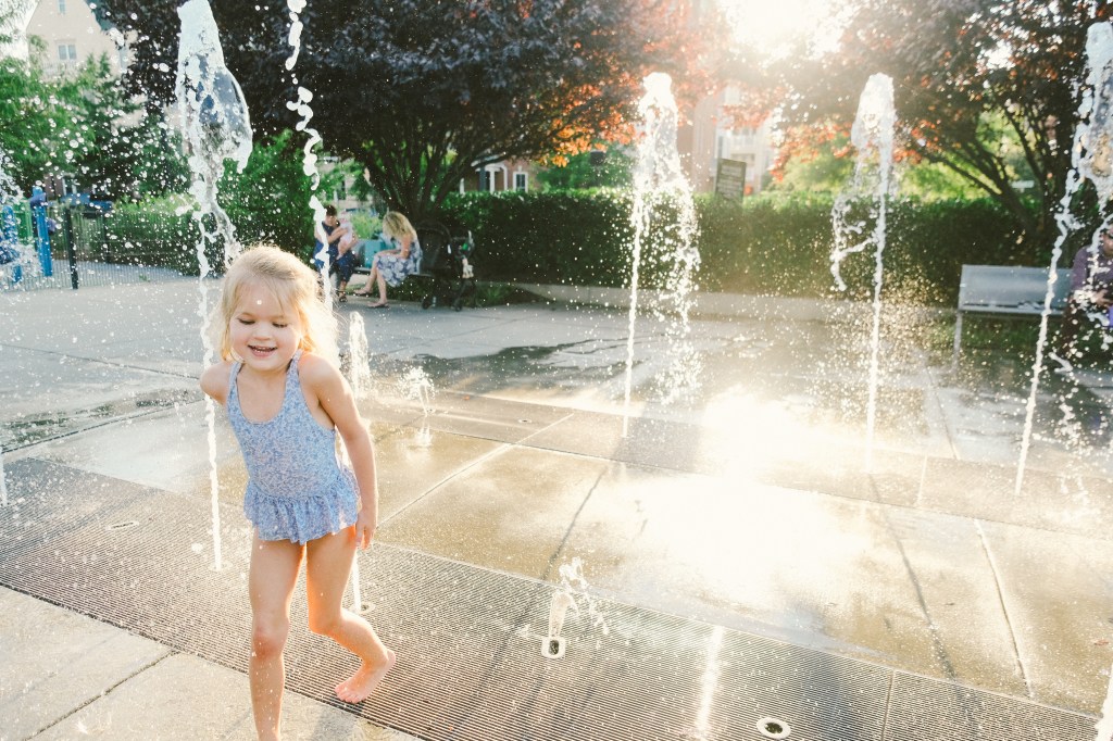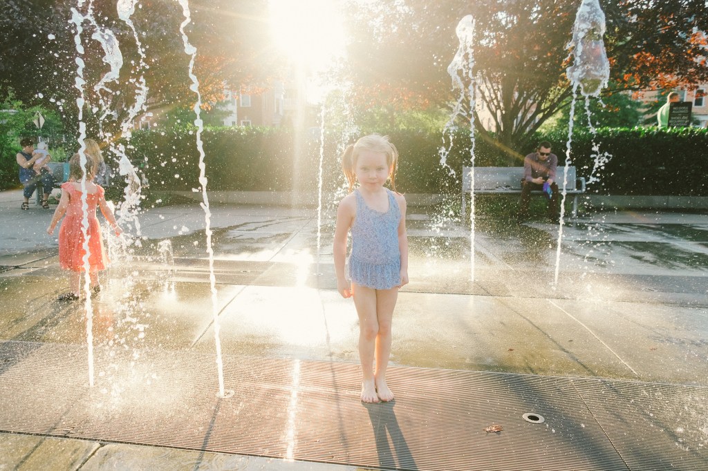 They still like the playground for the moment. Maddie still begs to go on the swings and Etta wants to hit the slides, but Henry often brings his own agenda. It feels like the end of something that I didn’t even know was a thing, this era where I just announced a playground and everyone went happily. I had swimsuits in my bag and the girls just stripped on the spot to change into them and they are definitely getting too old to do that. All three of them are in the same school this fall, three lunch boxes lined up and three backpacks by the door. Maddie is the first of our kids to do preschool, but those thirdborns will not be left behind, so they trek out the door together, little kids with big backpacks. Old enough to learn and grow and be away but still young enough to not hesitate to shuck off clothes by a fountain and change into a swimsuit. They are almost aware, but still innocent.